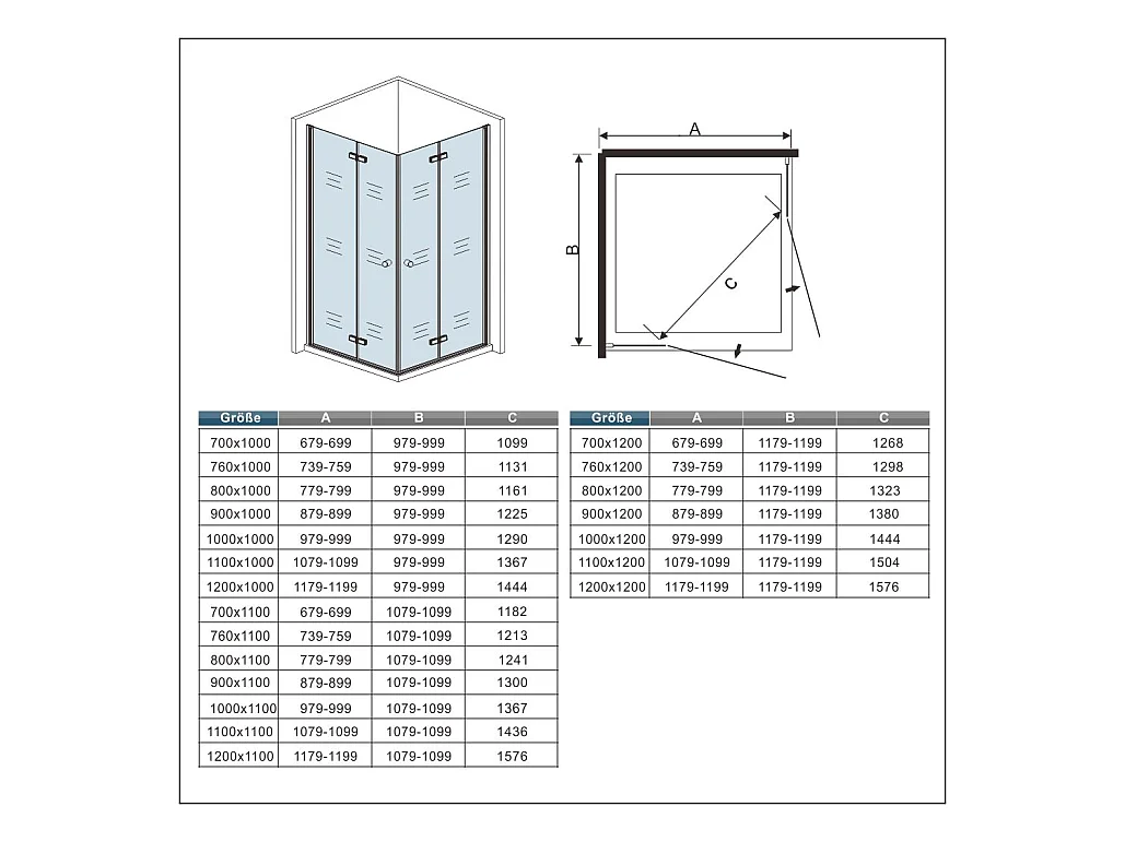 120x195cm 6mm Sicherheitsglas Duschwand Faltwand Duschkabine Duschtür Scharniertür