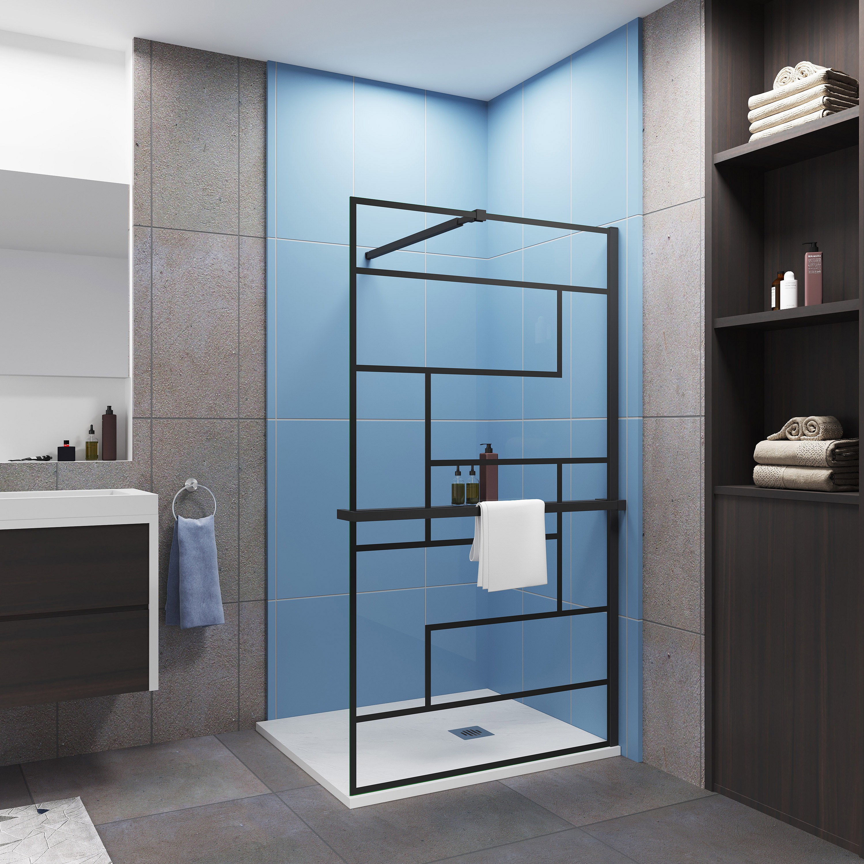 120x200cm 8mm ESG Schwarz mit Handtuchhalter Walk-in Duschabtrennung