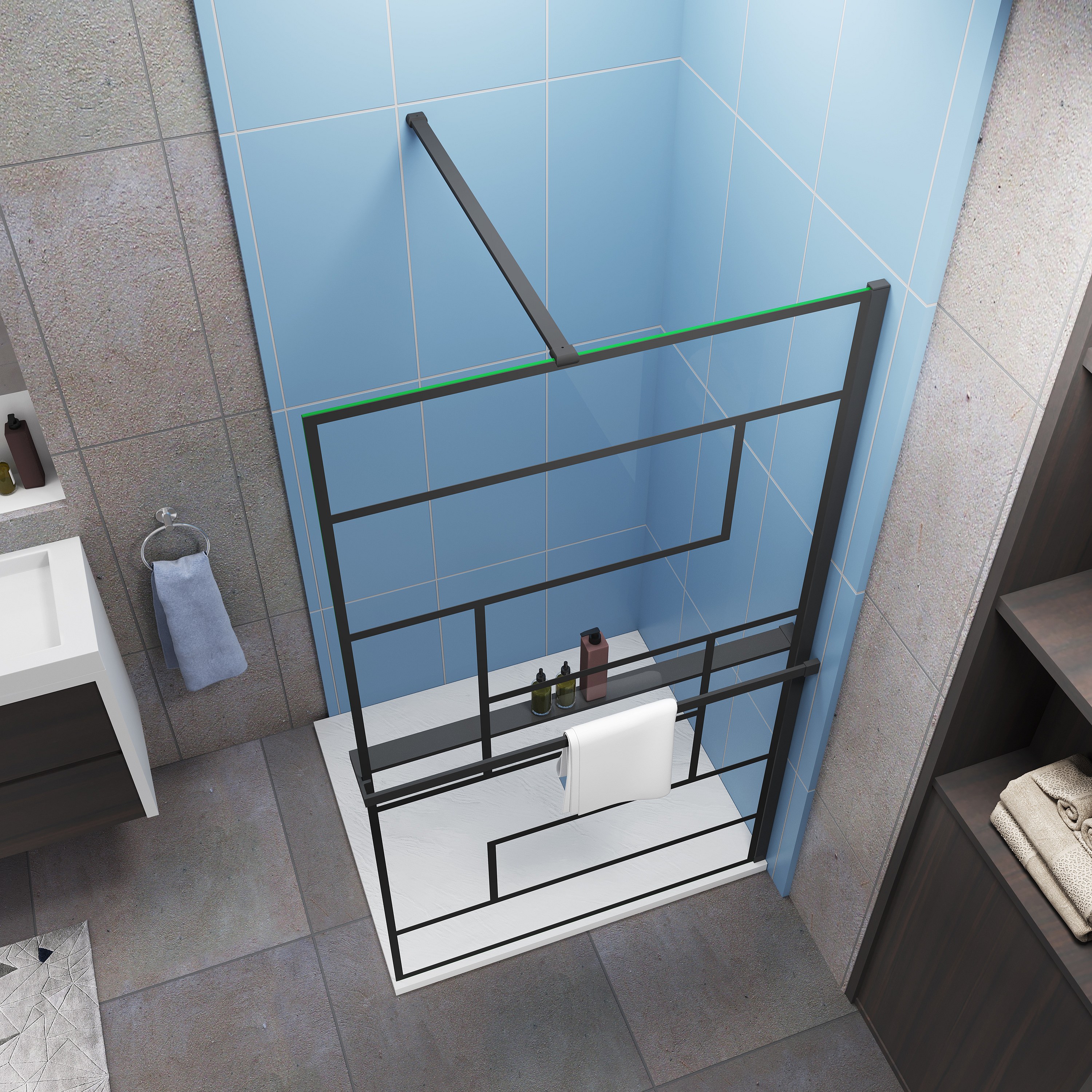 120x200cm 8mm ESG Stützstange Handtuchhalter schwarz Duschabtrennung