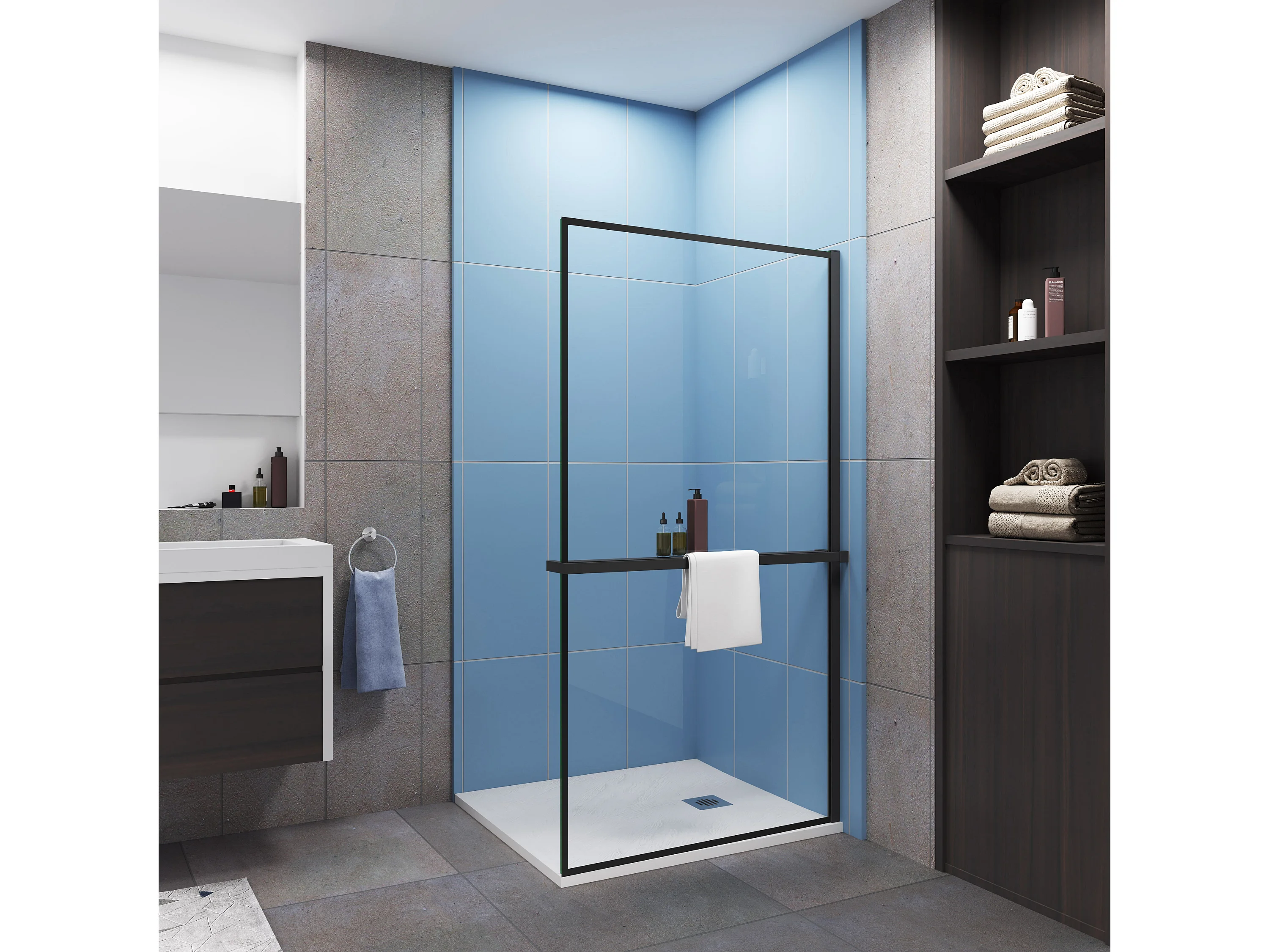 120x200cm 8mm ESG Stützstange Handtuchhalter schwarz Duschabtrennung