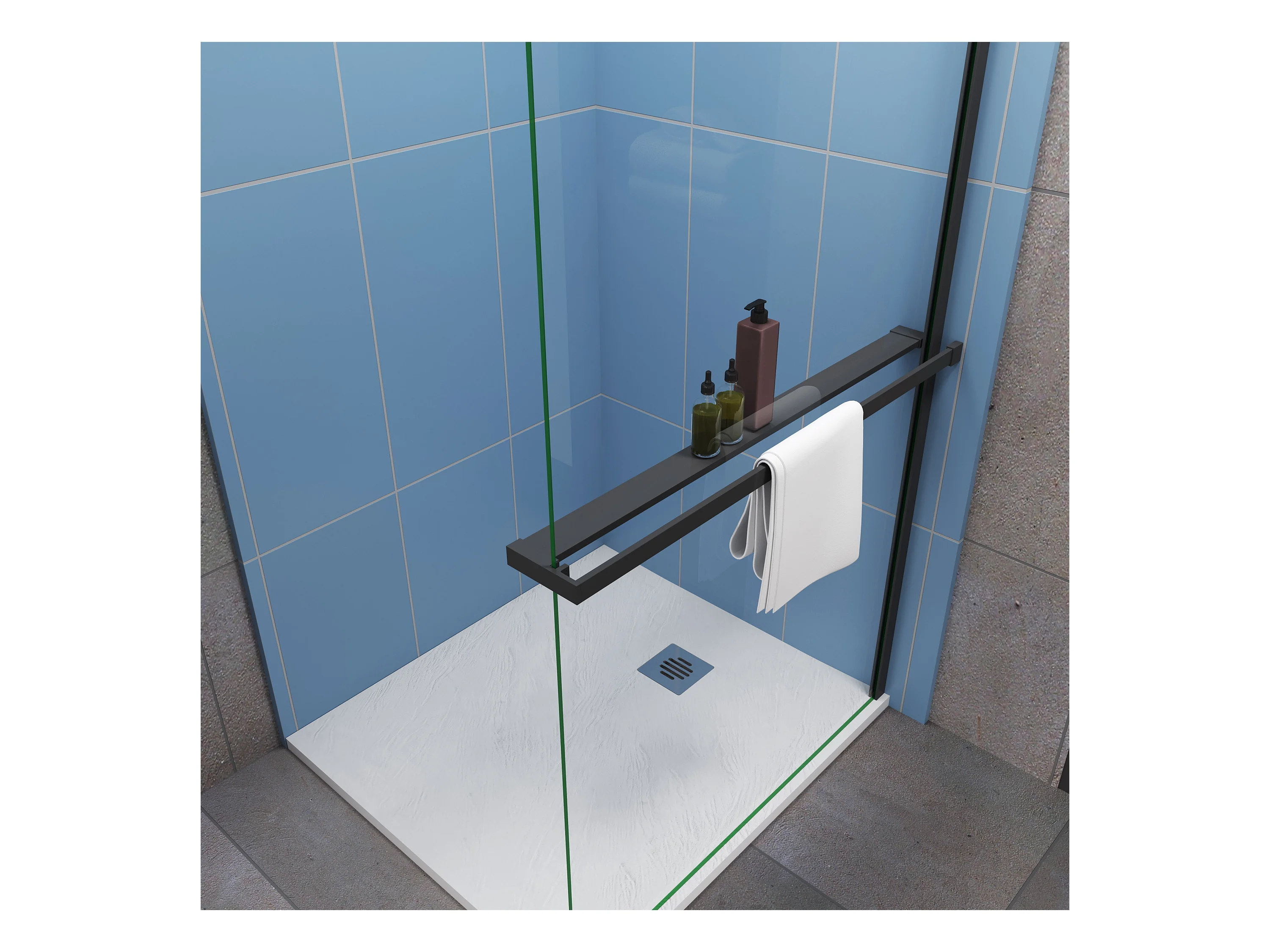 120x200cm schwarz Handtuchhalter Stützstange 8mm ESG Walk in Dusche