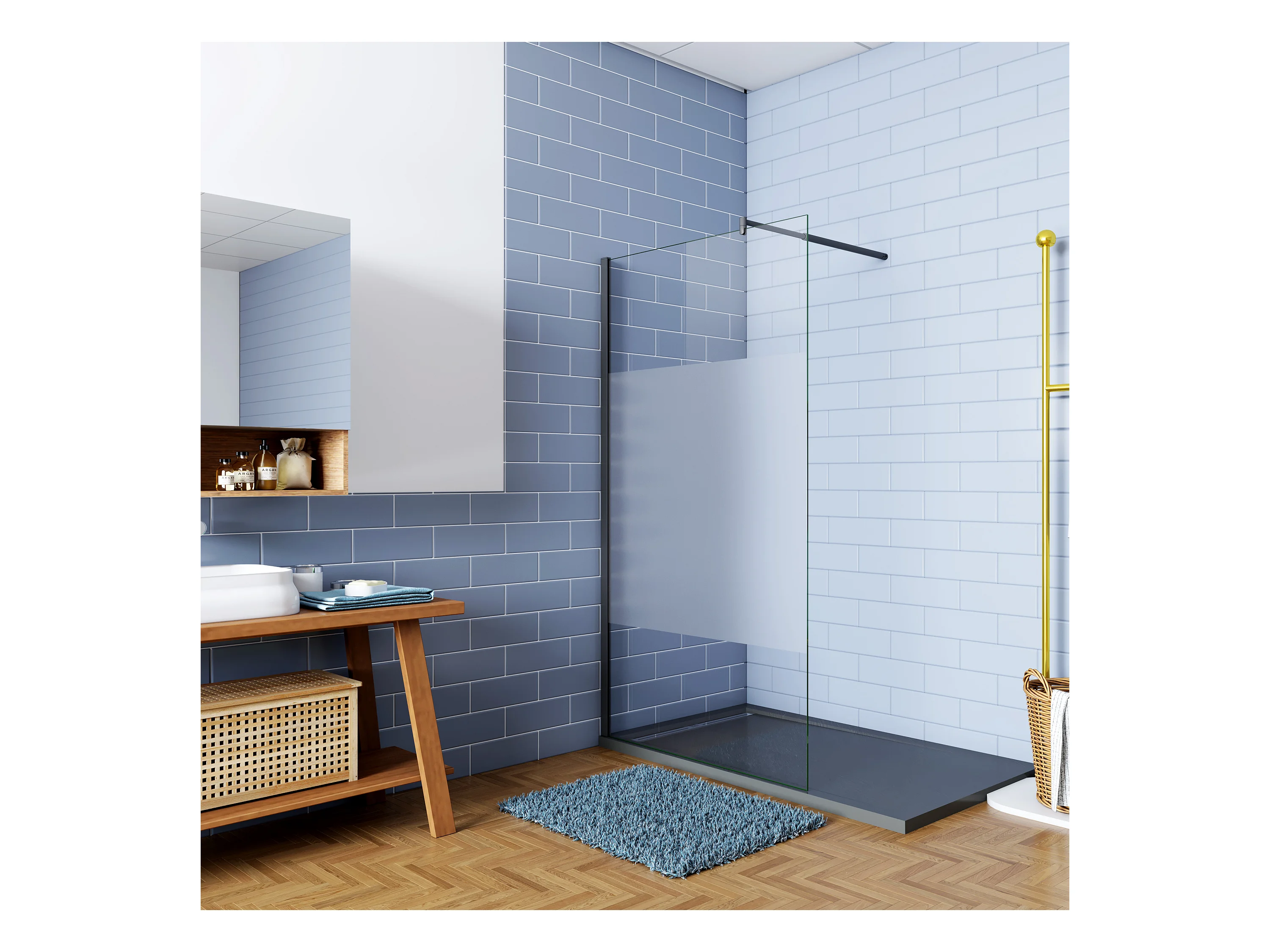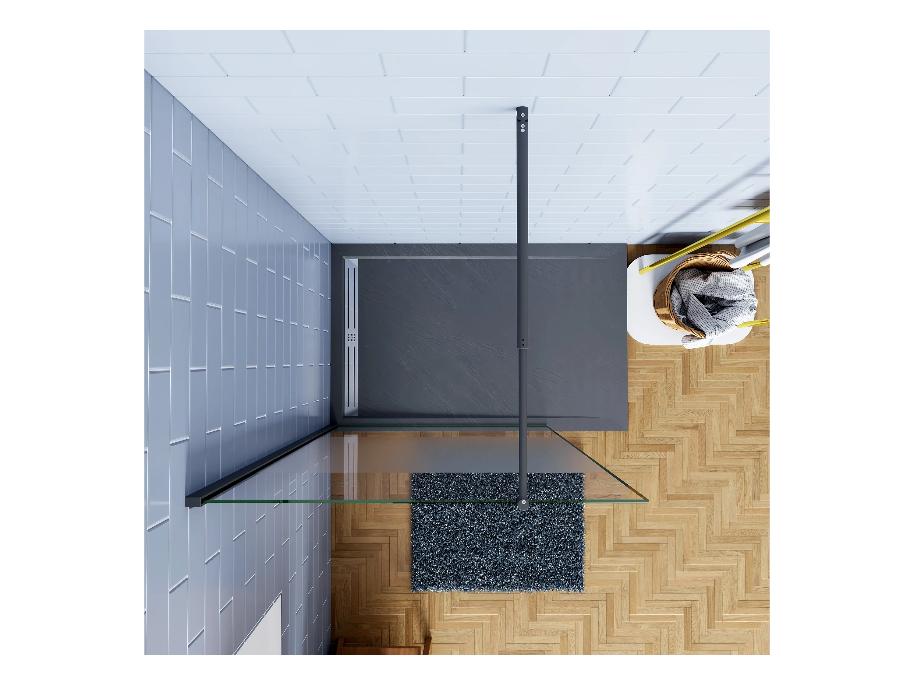 120x200cm Schwarzrahmen Duschabtrennung Walk In 10mm Nano ESG Milchglasstreifen Duschabtrennung + 70-120cm Stabilisator Höhe 200cm