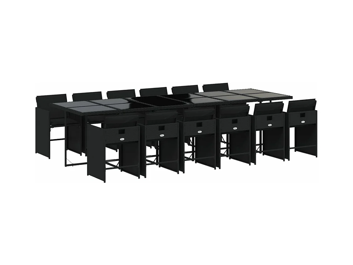 13-tlg. Garten-Essgruppe mit Kissen Schwarz Poly Rattan