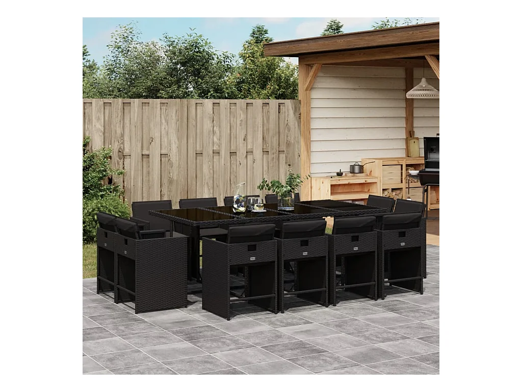 13-tlg. Garten-Essgruppe mit Kissen Schwarz Poly Rattan