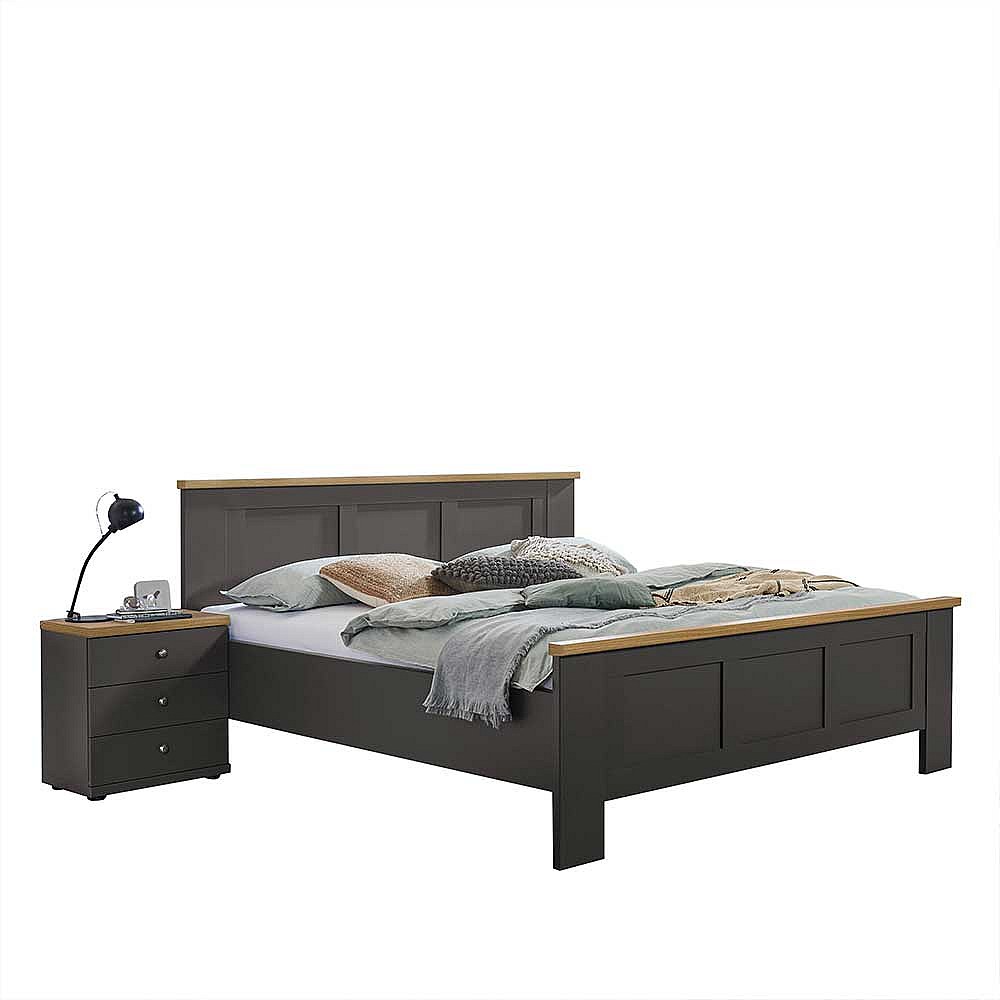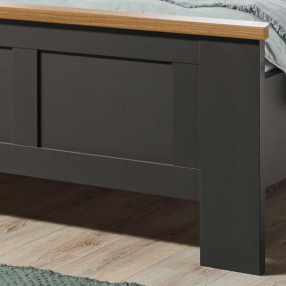 140 cm Landhaus Bett in Dunkelgrau und Eiche Bianco Made in Germany