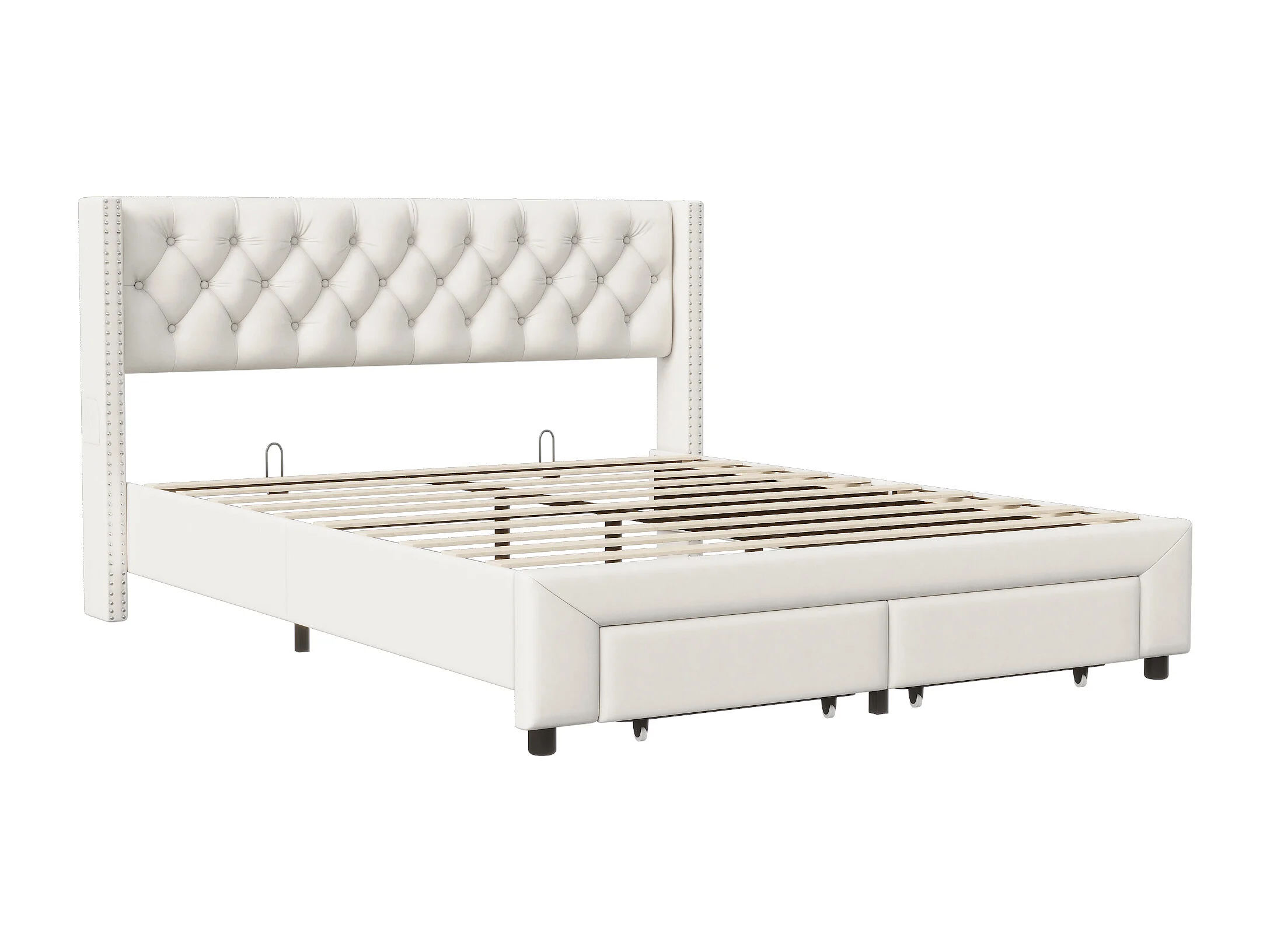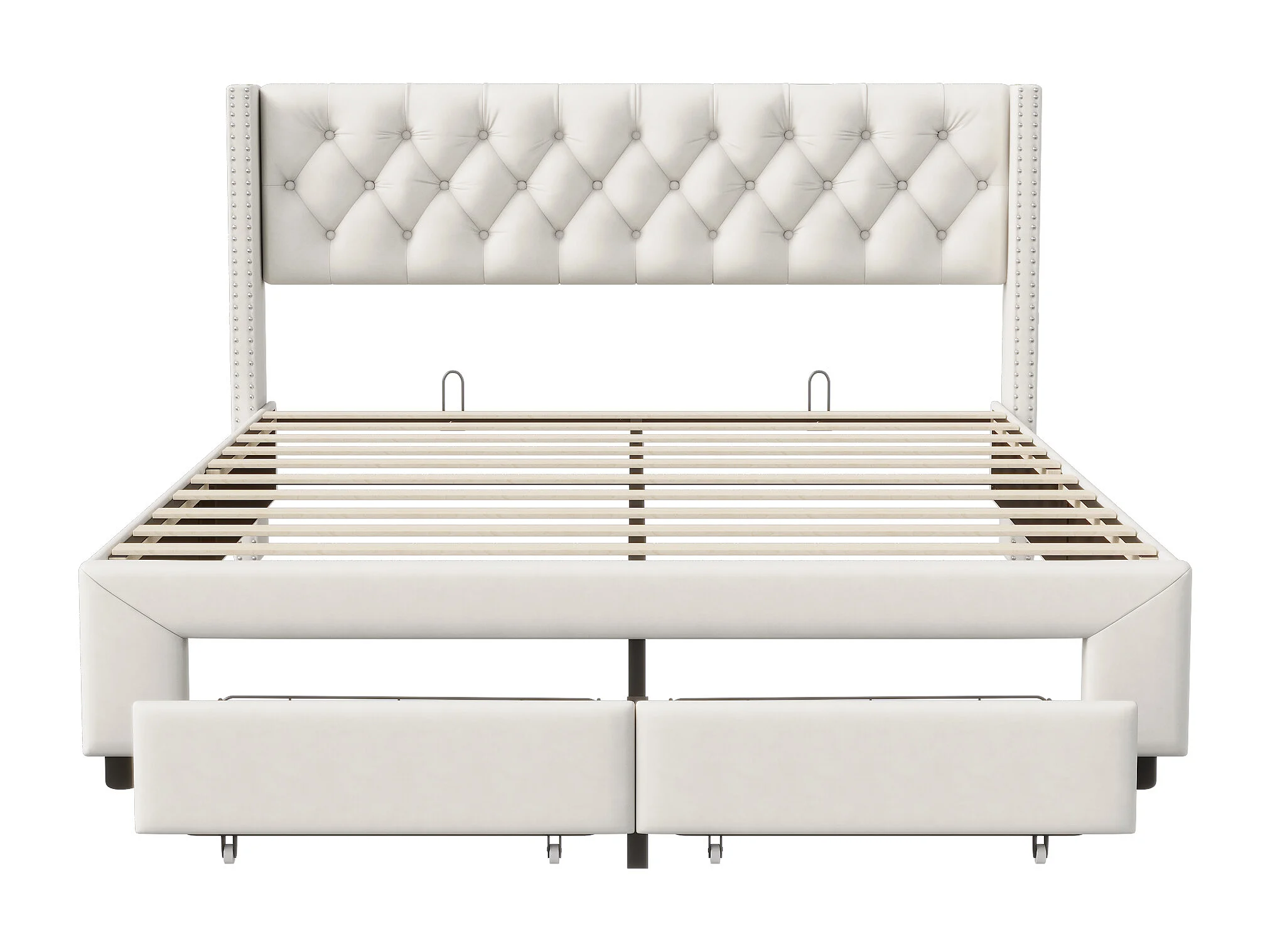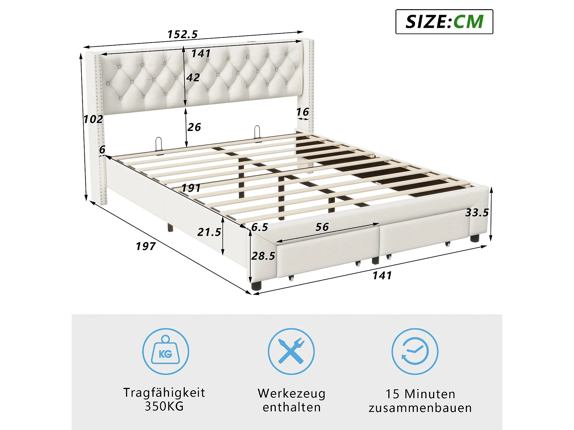 140x190cm Bett mit Stauraum und LED, Lattenrost, gepolstertes Doppelbett mit USB, Samt, Beige