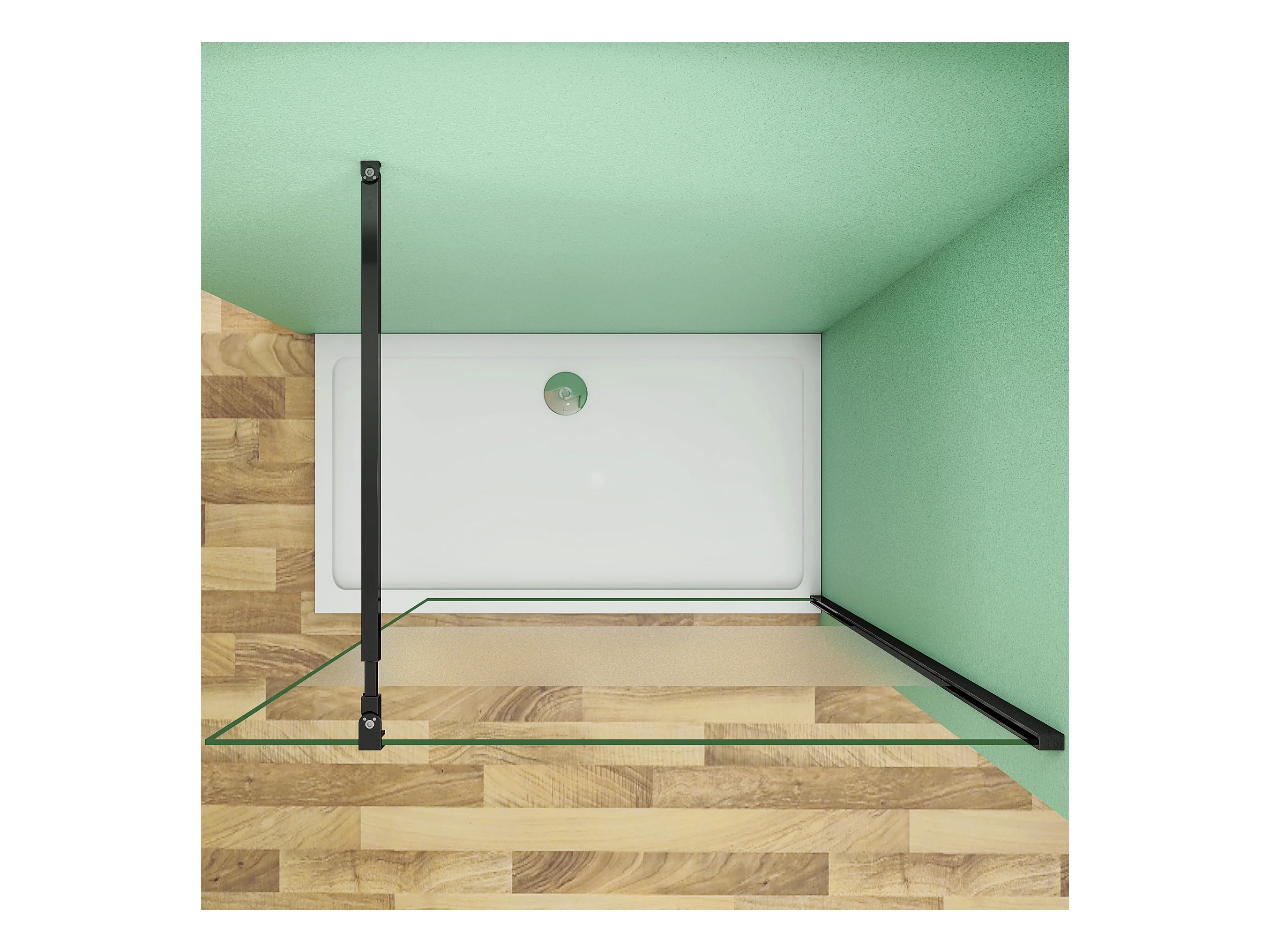 140x200cm Schwarzrahmen Duschabtrennung Walk In 8mm Nano ESG Milchglasstreifen Duschabtrennung + 73-120cm Stabilisator Höhe 200cm