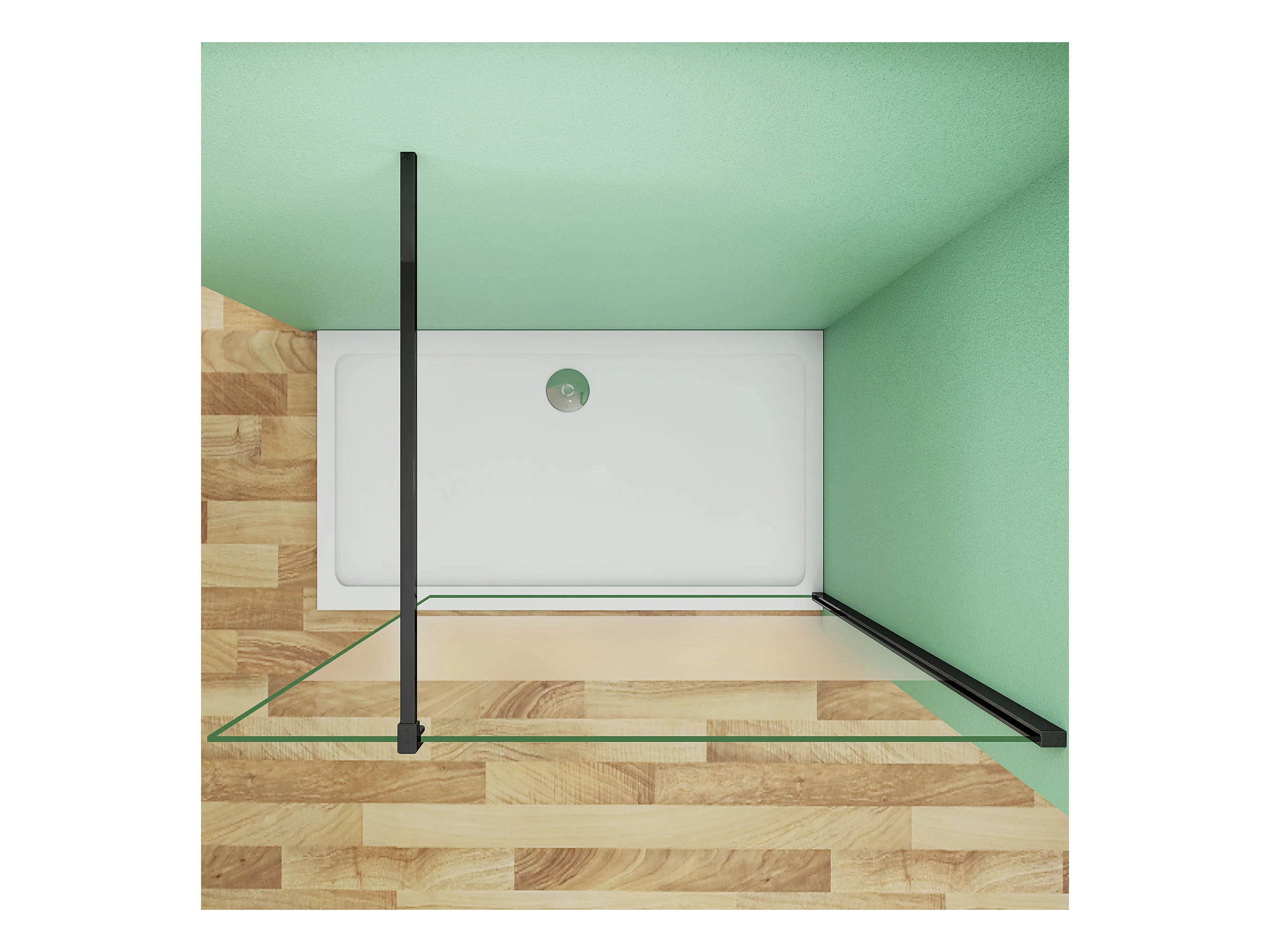 140x200cm Schwarzrahmen Duschabtrennung Walk In 8mm Nano ESG Milchglasstreifen Duschabtrennung + F Form 140cm Stabilisator Höhe 200cm