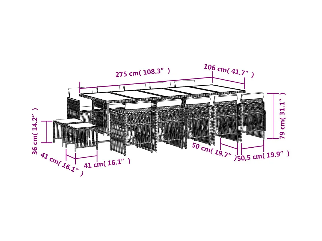 15-tlg. Garten-Essgruppe mit Kissen Braun Poly Rattan