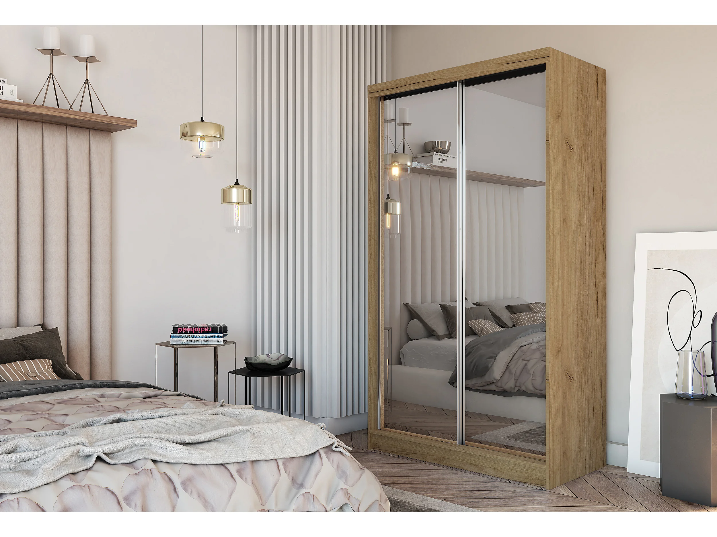 150 cm Kleiderschrank Darix mit Spiegel inklusive 2 Schiebetüren Schwebetürenschrank (Farbe: artisan)