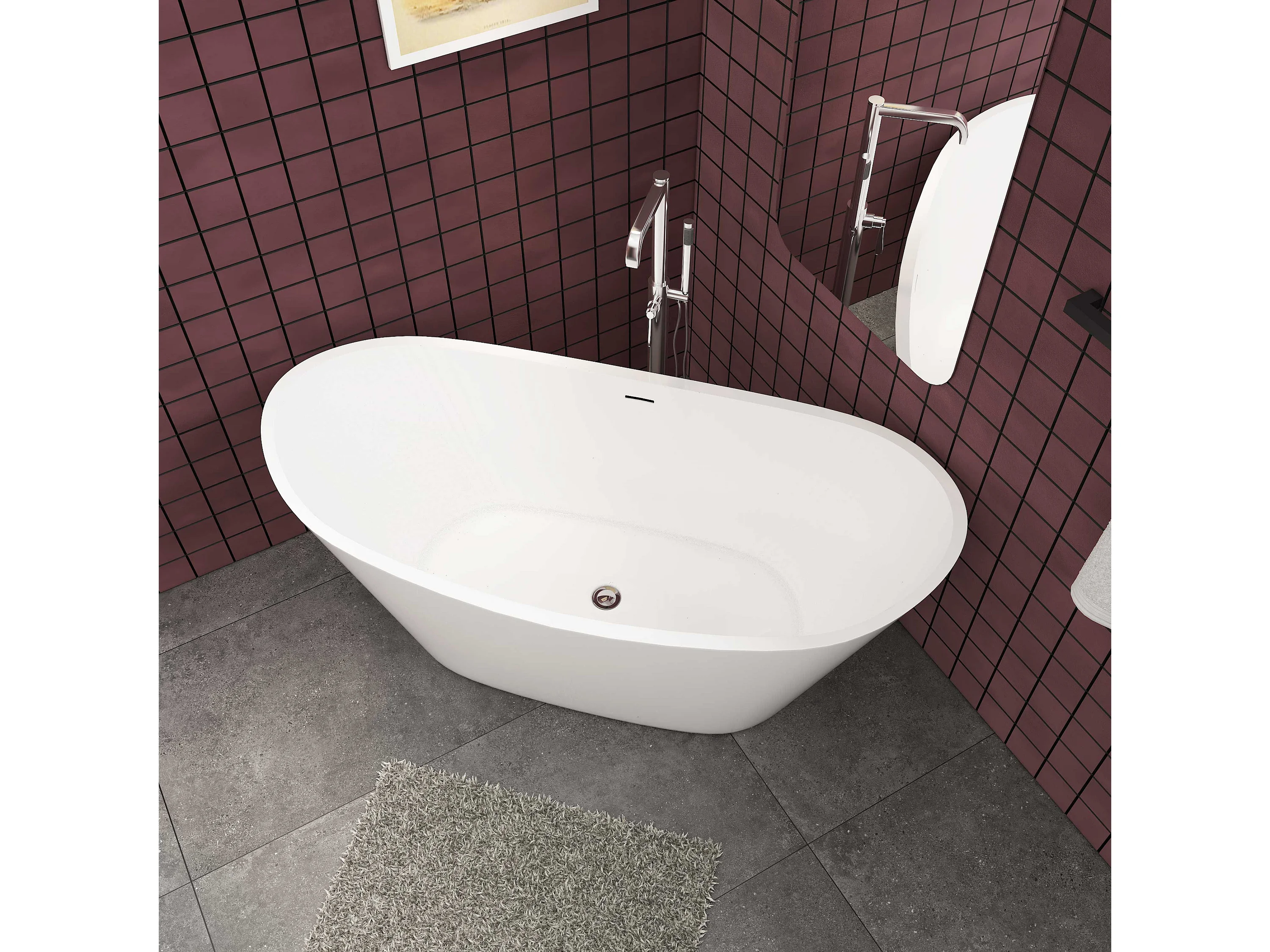 150x72x65 cm freistehende Badewanne Schiffsbadewanne Acrylbadewanne