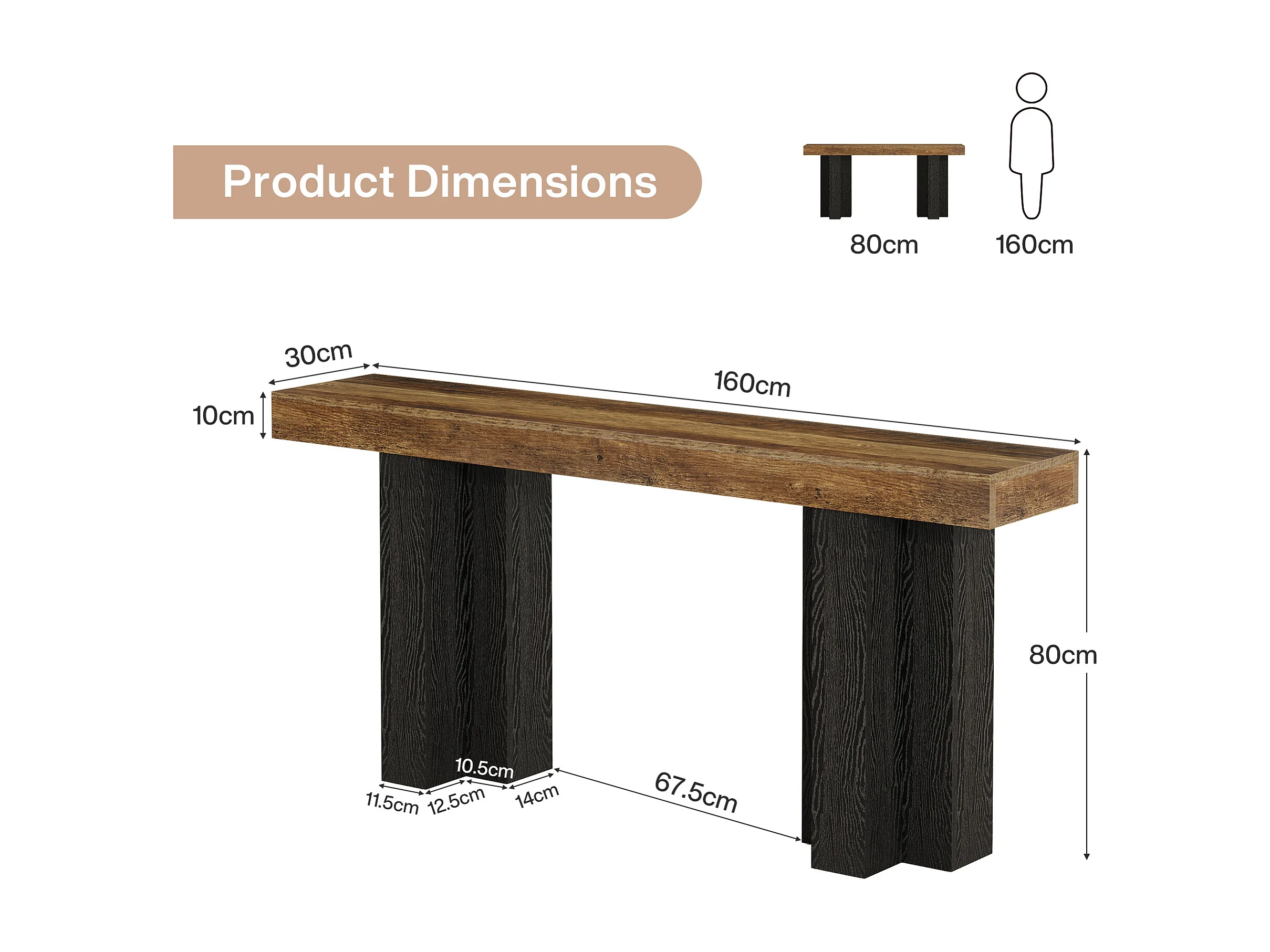 160 cm hohe Konsole für die Eingangshalle, ländliche Eingangshalle-Tafel mit stabilen Beinen, schmale lange Sofa-Konsole hinter der Couch