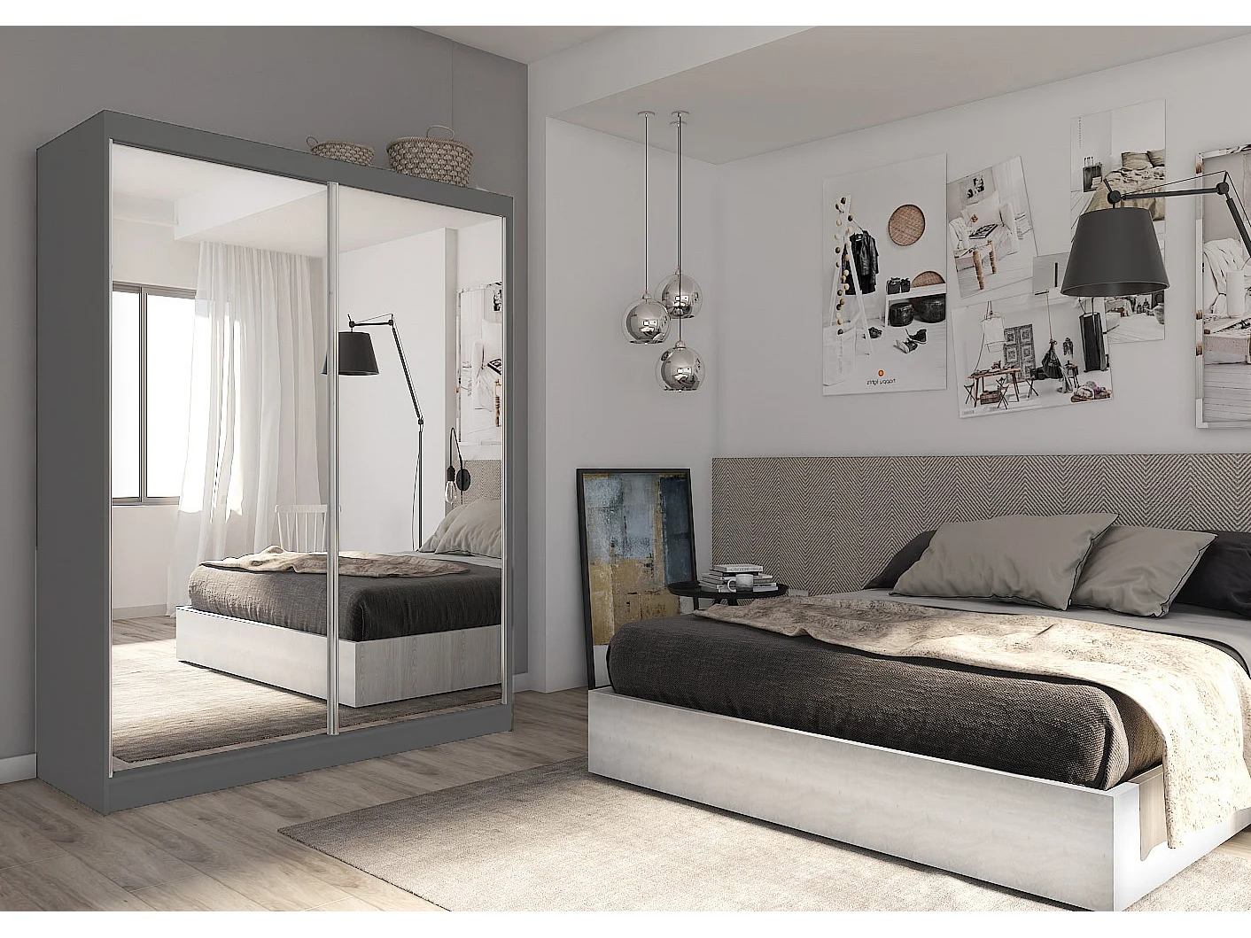 160 cm Kleiderschrank Darix mit Spiegel inklusive 2 Schiebetüren Schwebetürenschrank (Farbe: graphit)