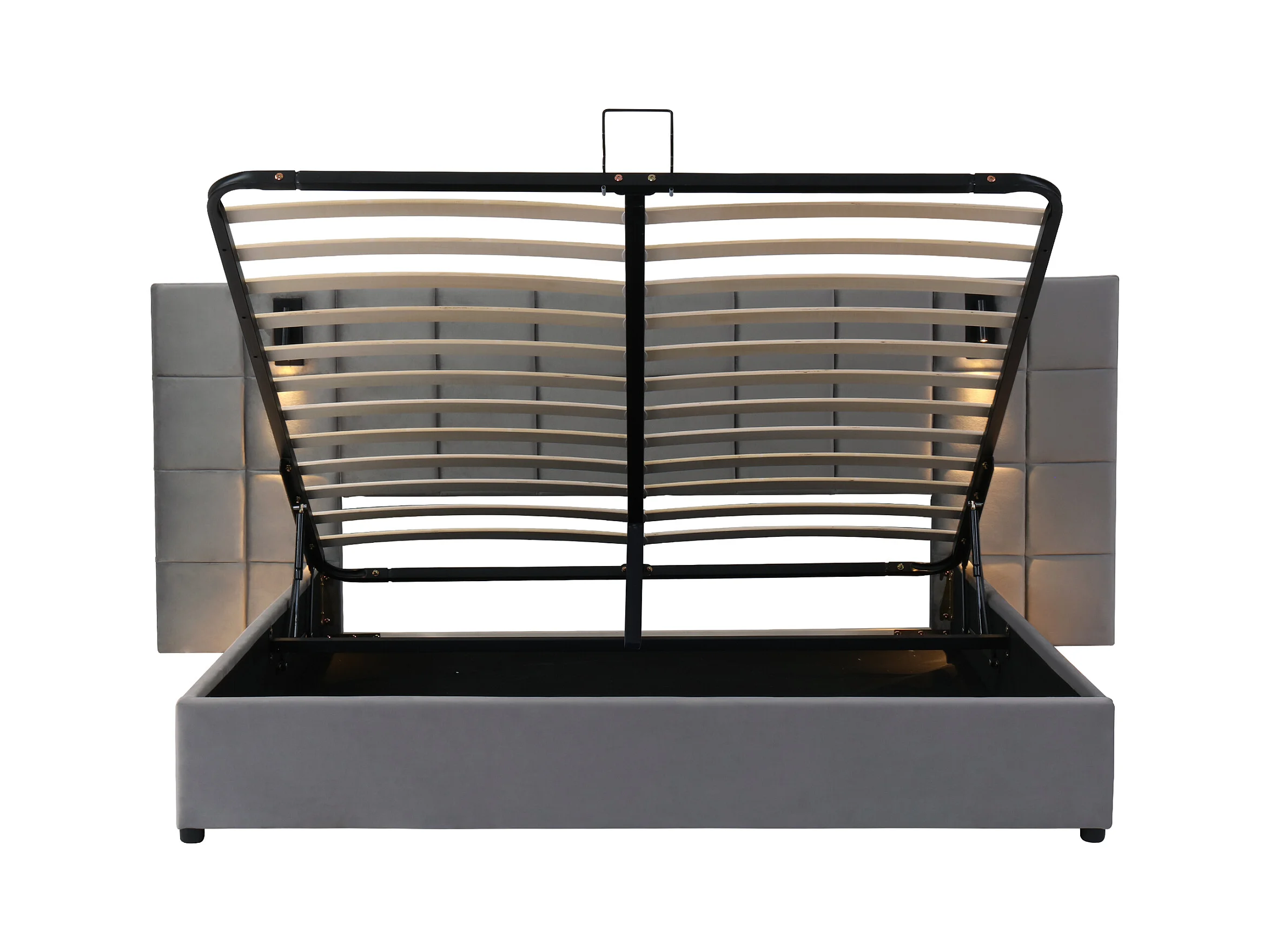 Samtbett mit Stauraum – 160 x 200 cm – mit LED und Ladeanschluss – Grau (Nachttisch nicht im Lieferumfang enthalten)