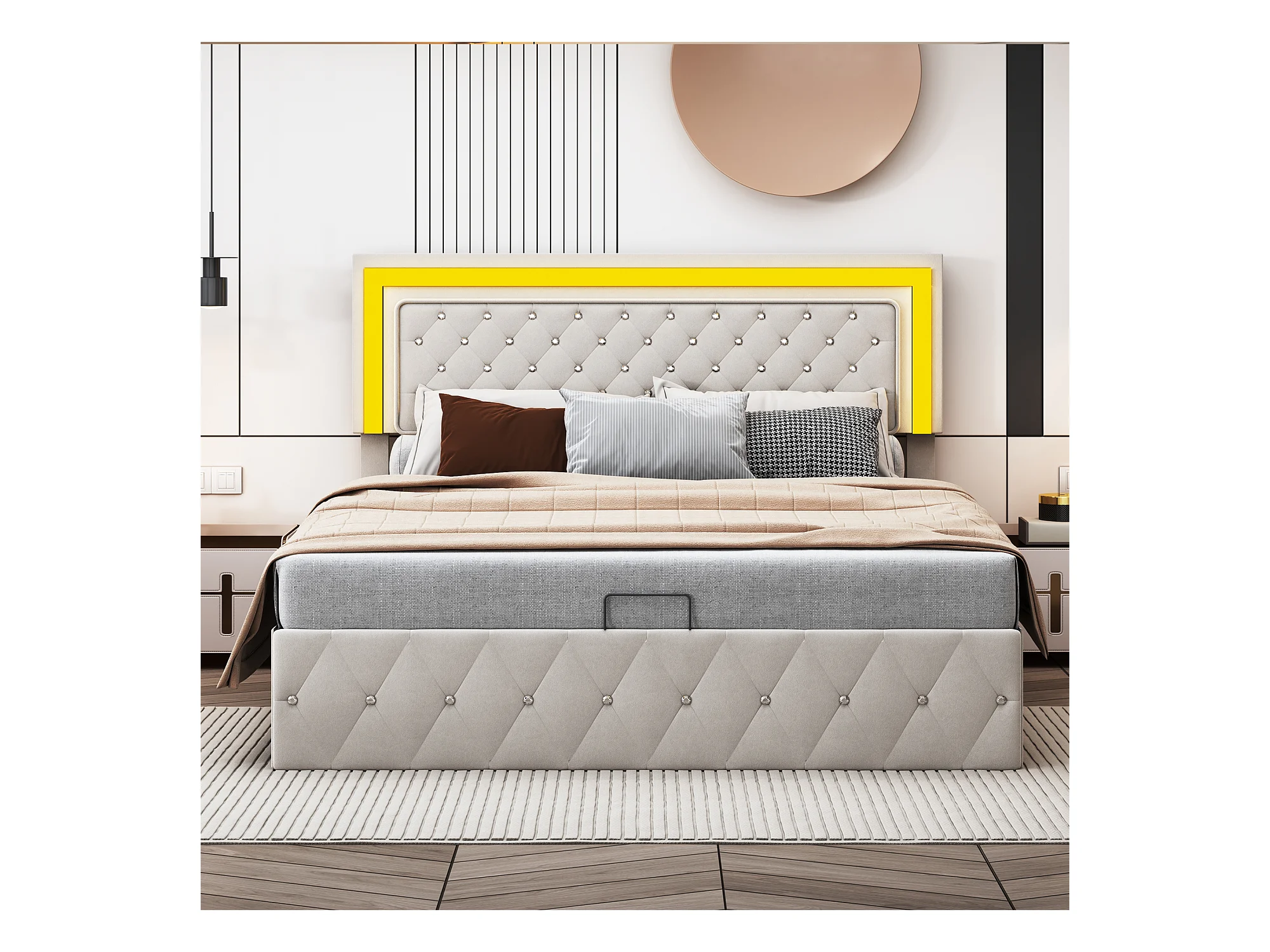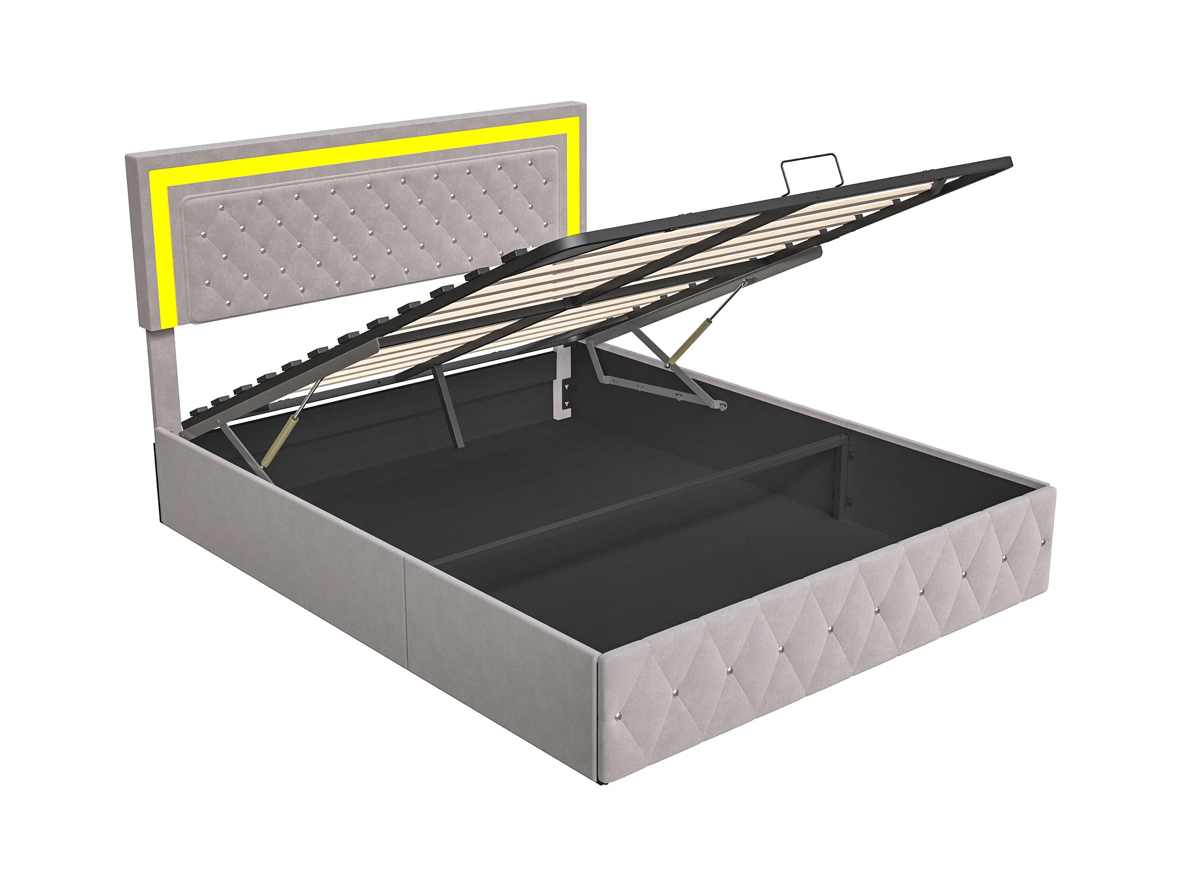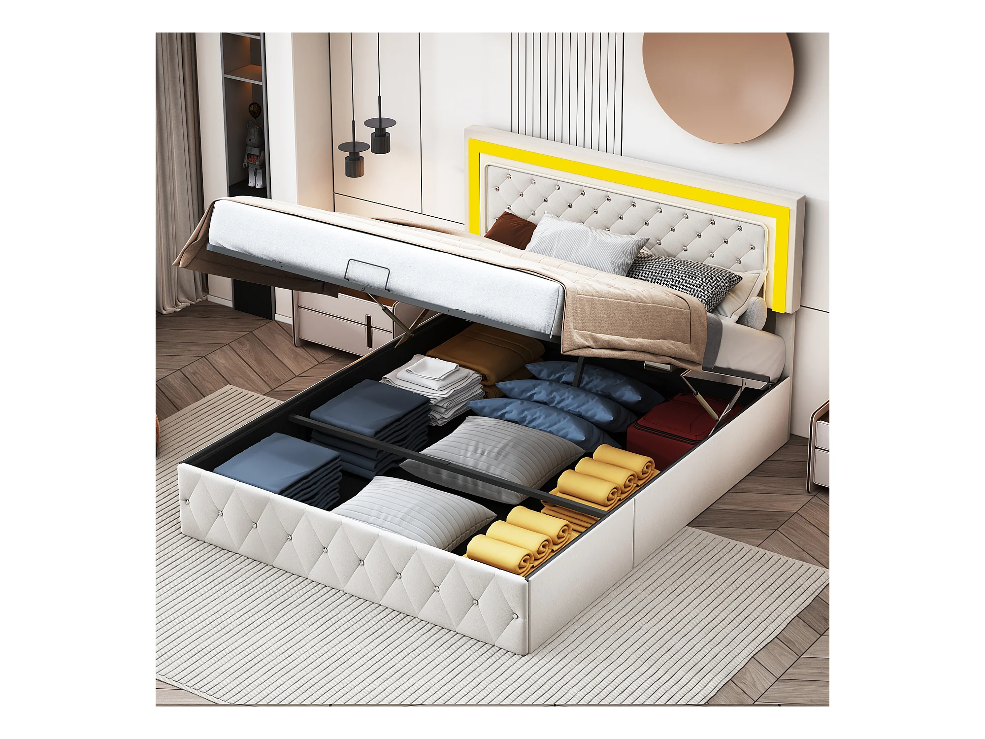 160x200 cm Samtbett mit Stauraum - Mit LED und Lattenrost - Doppelbett mit Stauraum - Beige