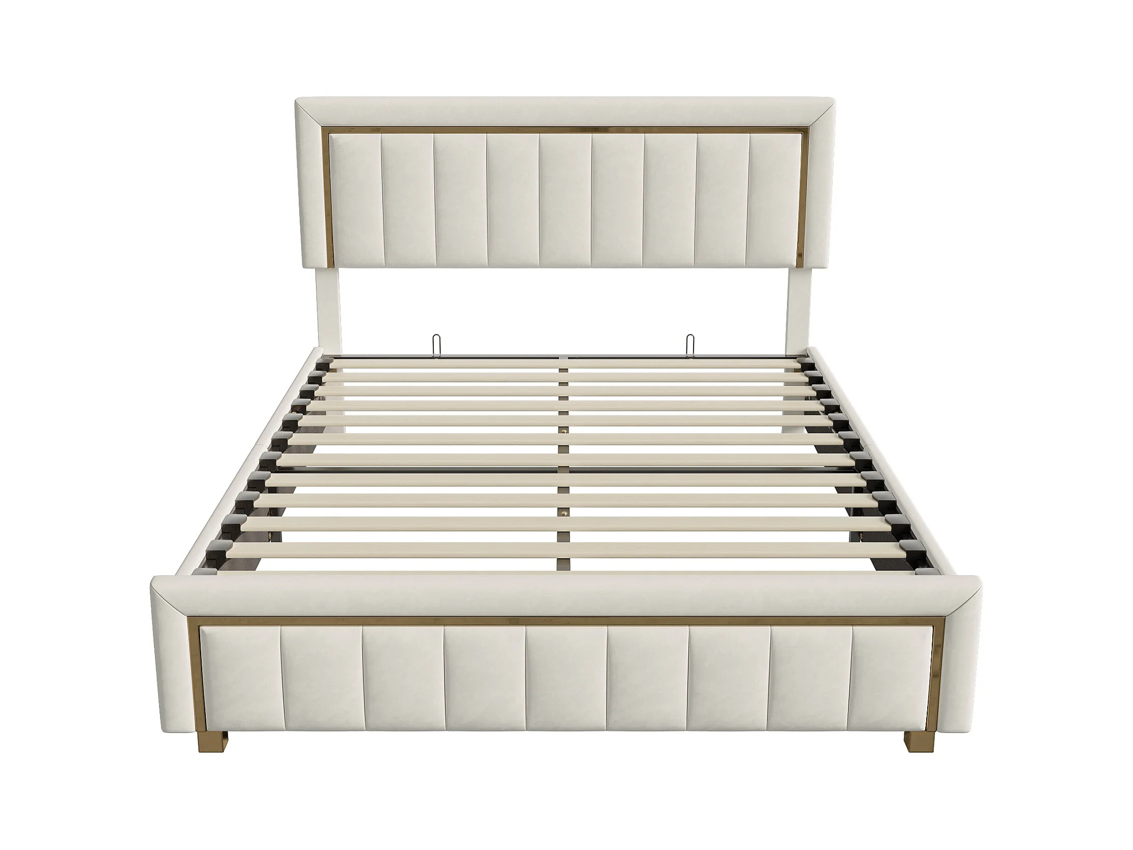 160x200cm Samtbett mit Stauraum - Funktionsbett mit Stauraum - Doppelbett - Lattenrost und hydraulischer Stauraumbox - Beige