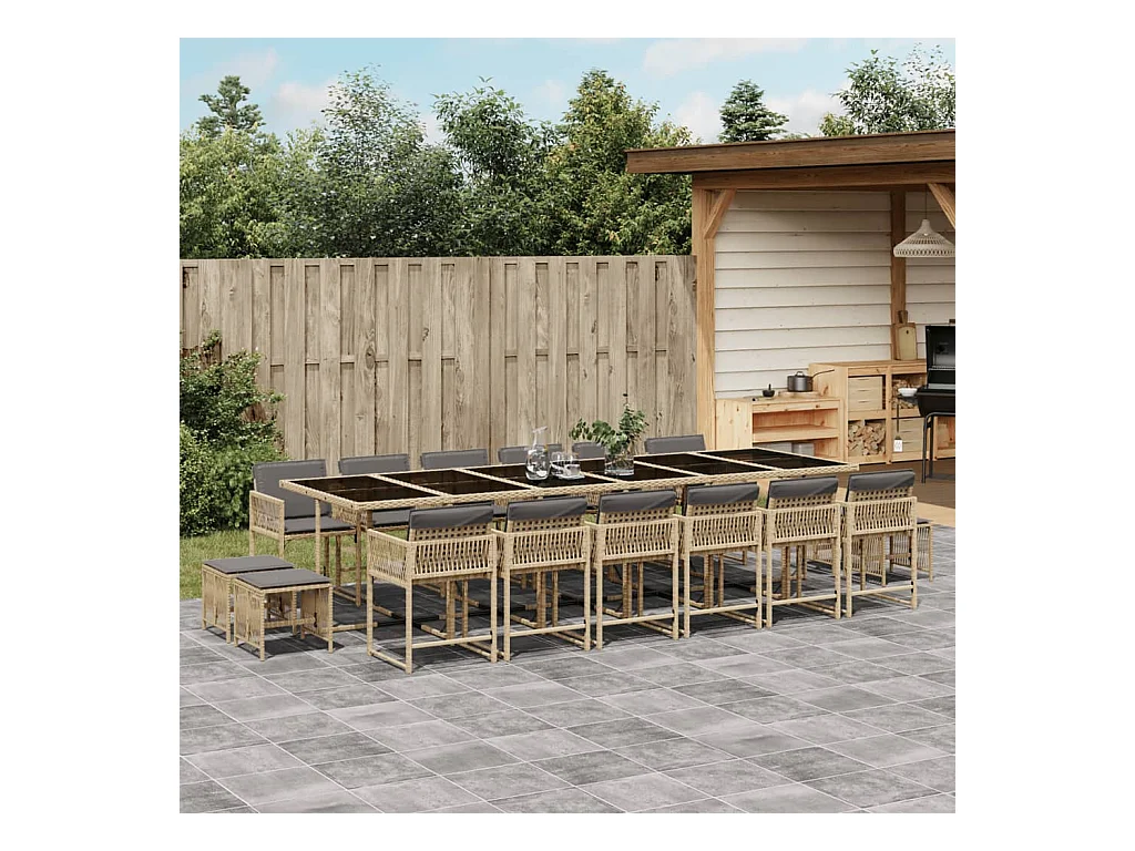17-tlg. Garten-Essgruppe mit Kissen Beigemischung Poly Rattan