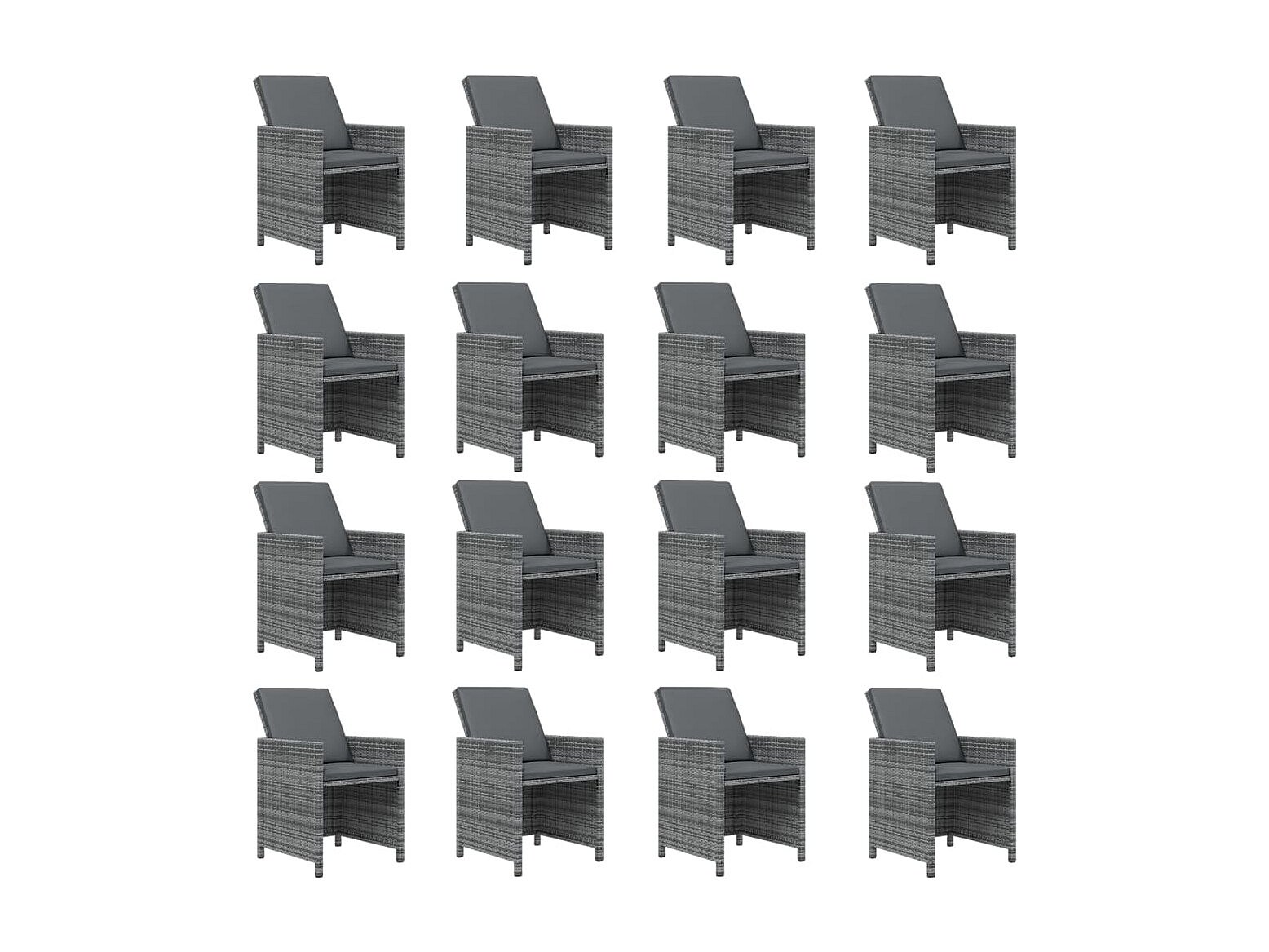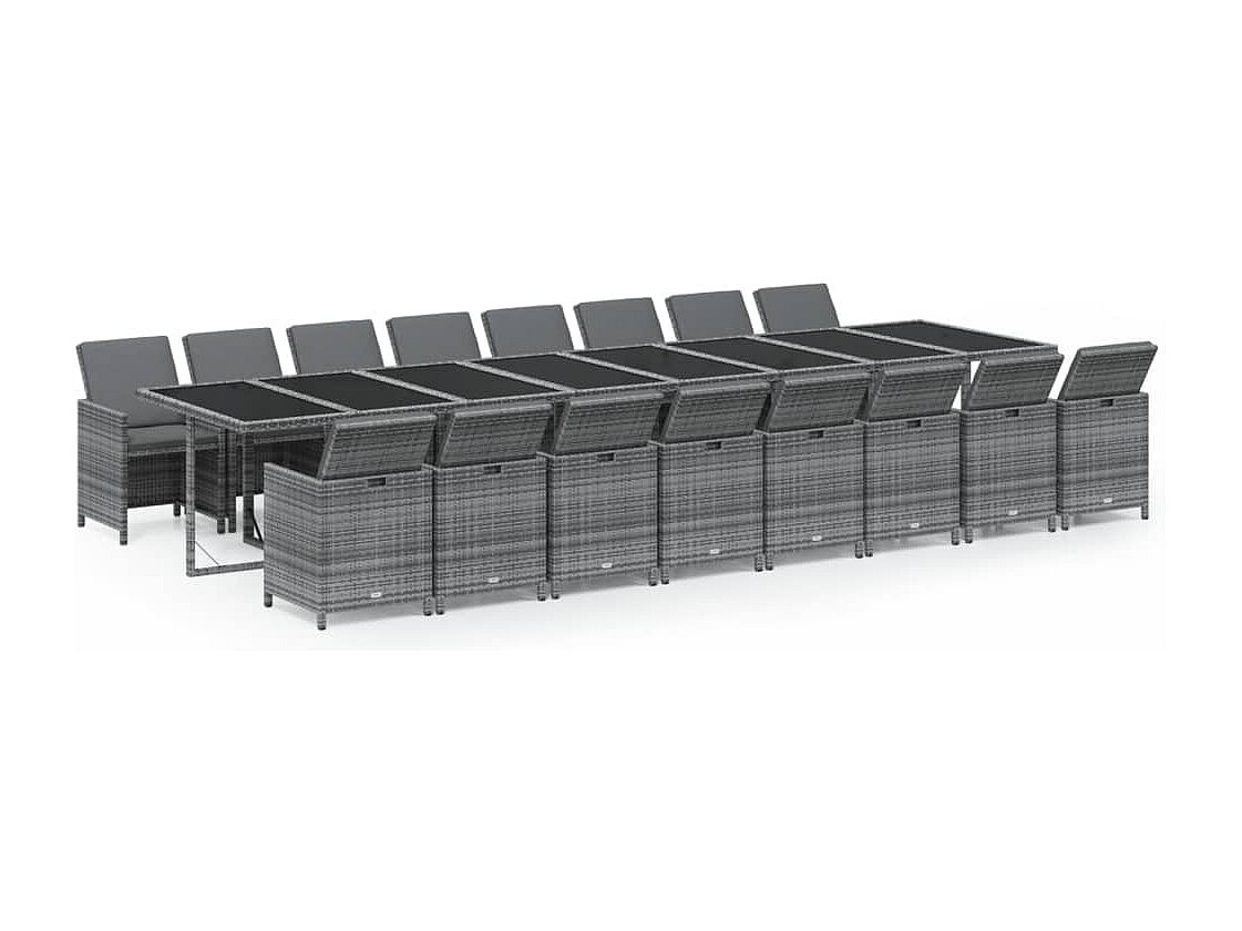 17-tlg. Garten-Essgruppe mit Kissen Grau Poly Rattan