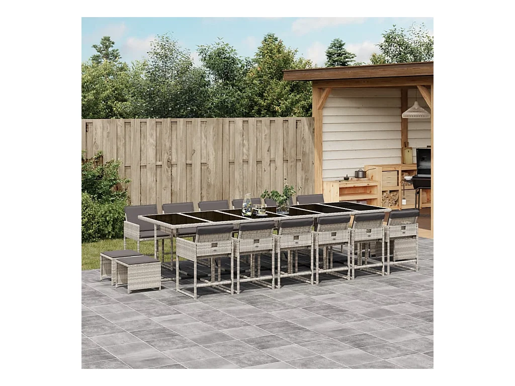 17-tlg. Garten-Essgruppe mit Kissen Hellgrau Poly Rattan