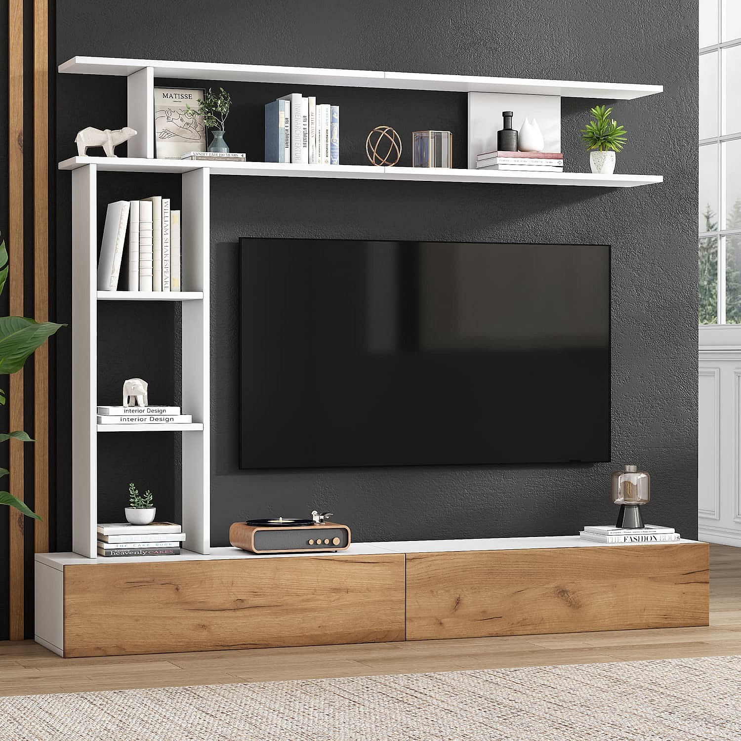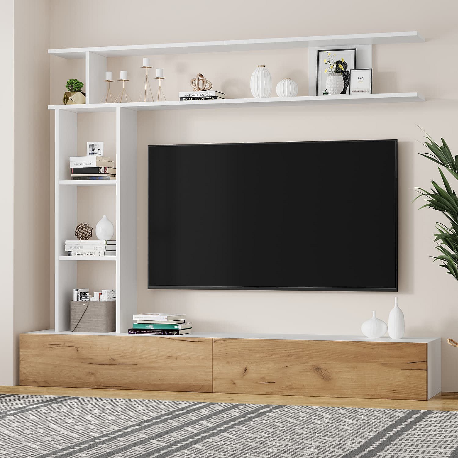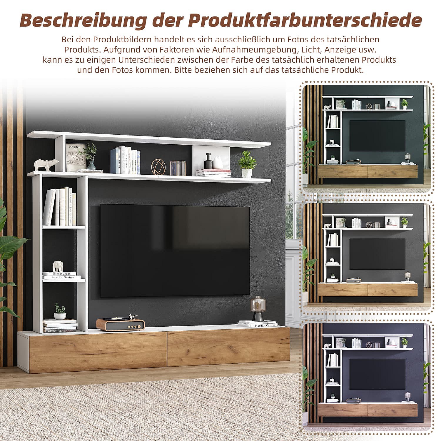 180*35*22.5cm TV Wohnwand-set mit Vitrinen,Mediawand inkl.TV-Board, Standregal und Wandregal,TV Wohnzimmermöbel-Set,TV-Schrank, stehend&hängend