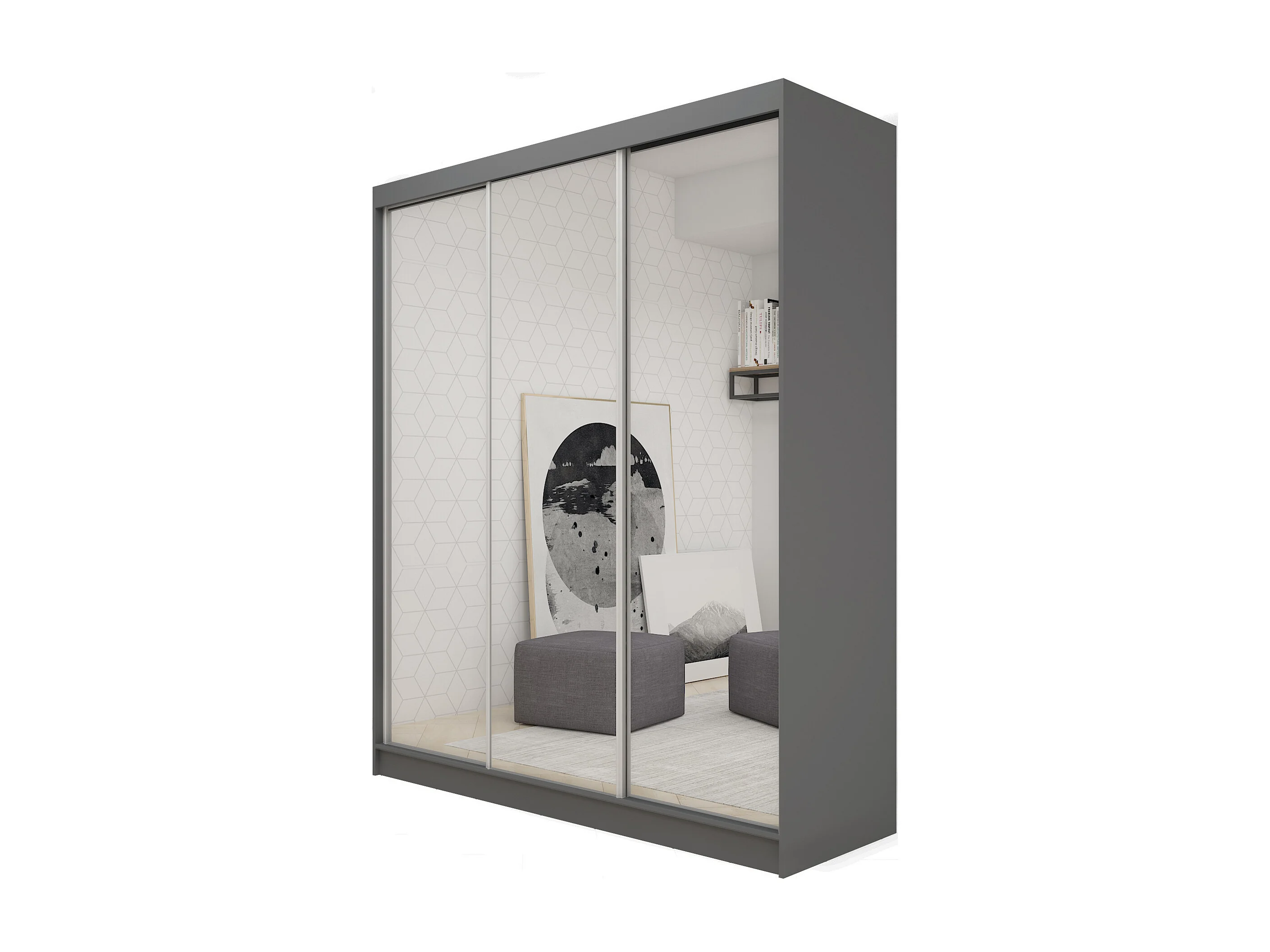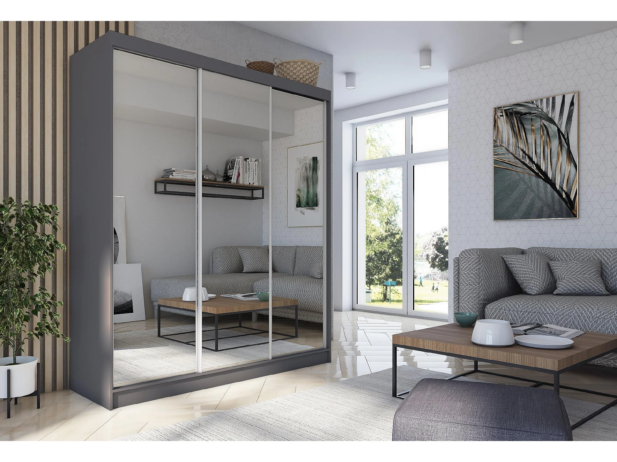 180 cm Kleiderschrank Darix mit Spiegel inklusive 3 Schiebetüren Schwebetürenschrank (Farbe: graphit)