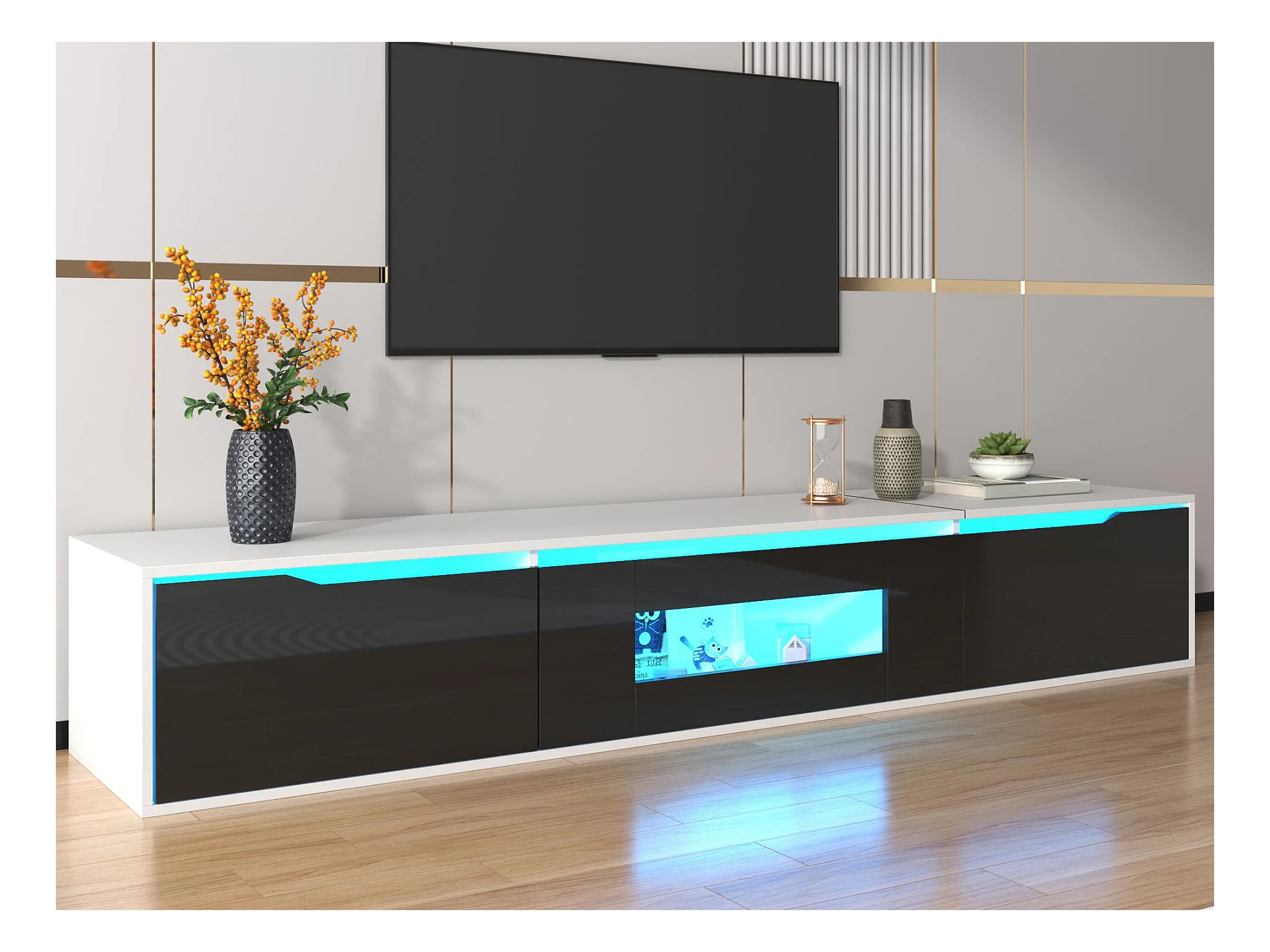 180-cm-TV-Gerät mit farbwechselndem LED-Licht – 3 große Fächer – Schwarz