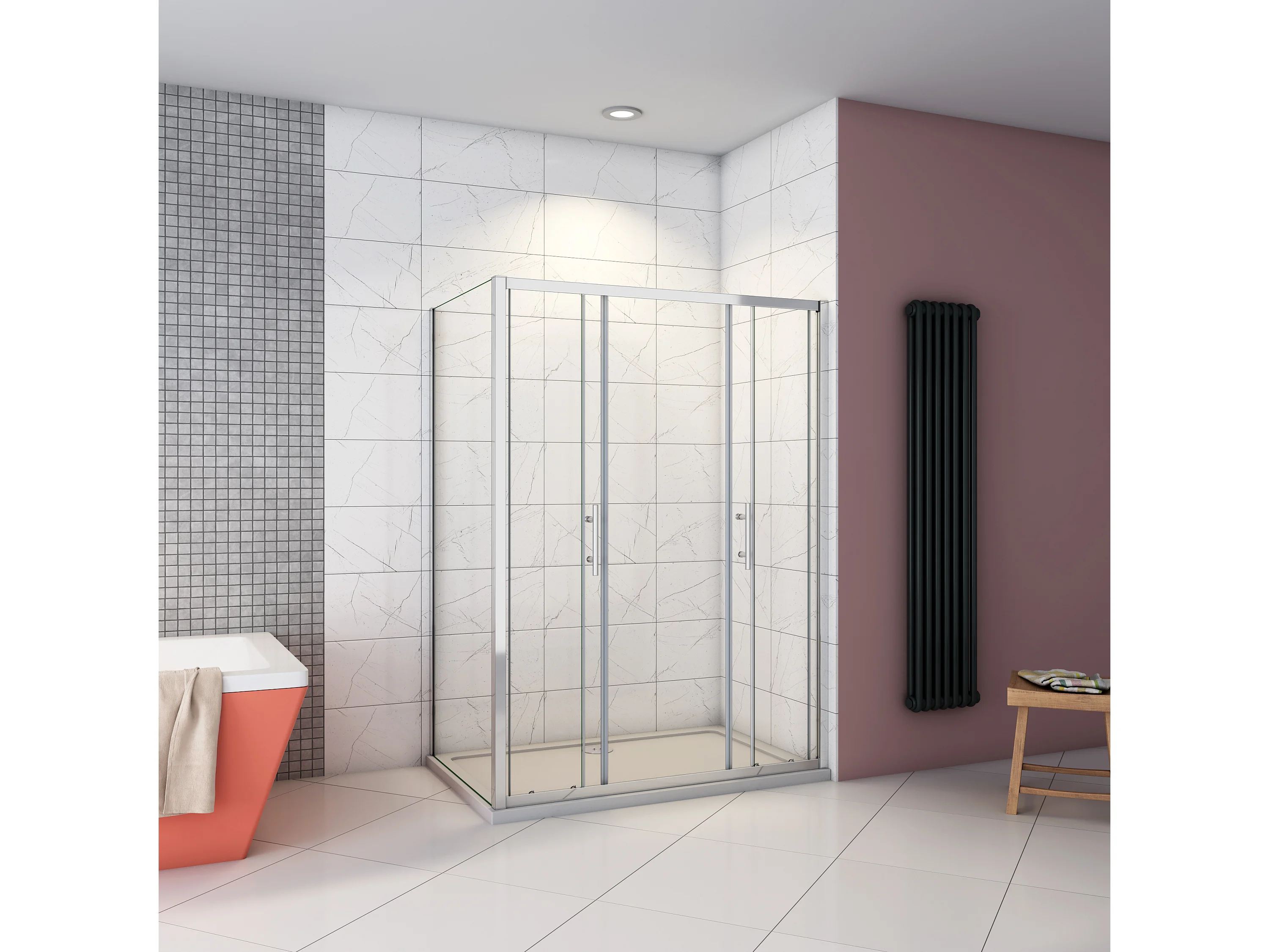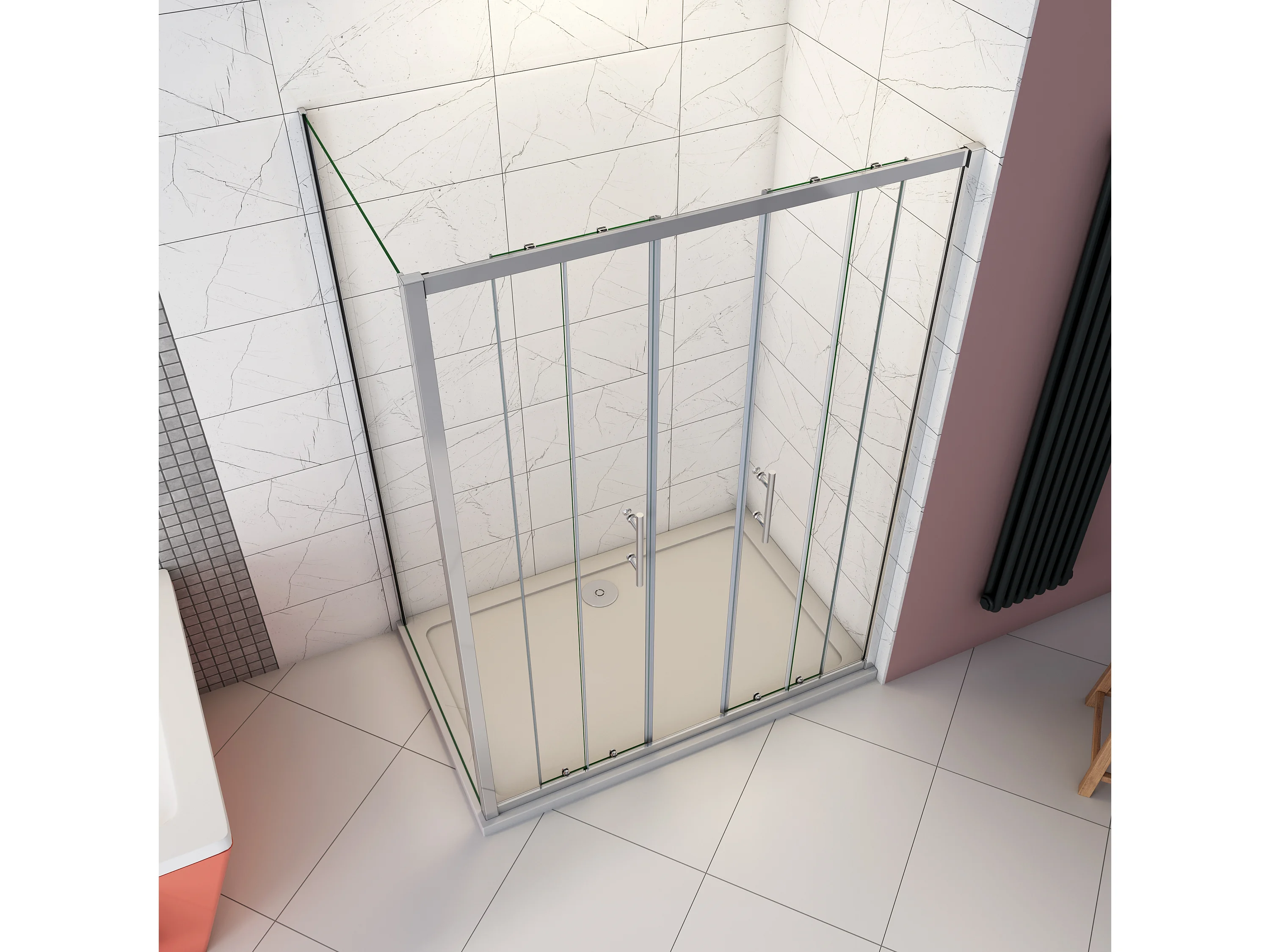 190cm 5mm ESG Sicherheitsglas Schiebetür Duschtür Duschkabine mit Seitenwand