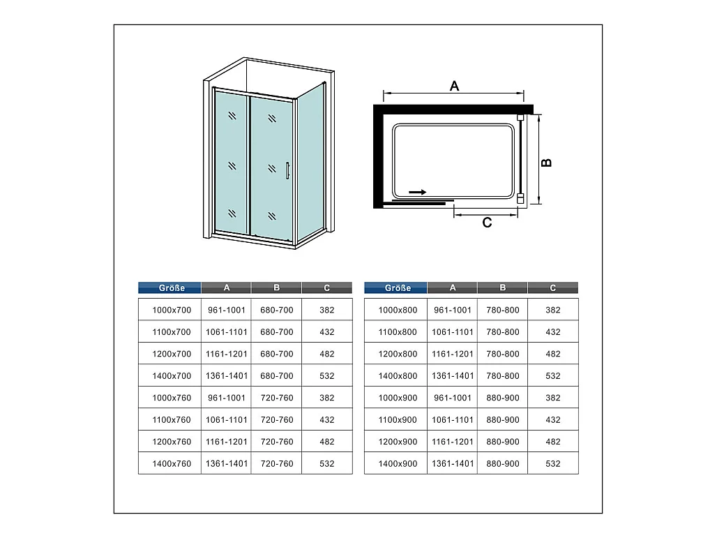 190cm 5mm ESG Sicherheitsglas Schiebetür Duschtür Duschkabine mit Seitenwand