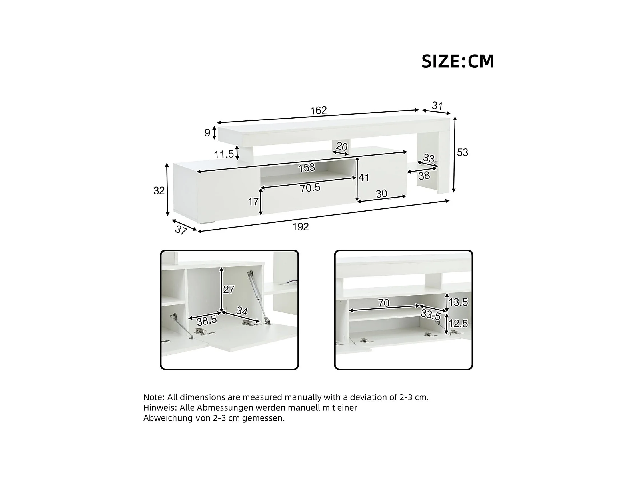 192*37*53cm TV schrank mit 3 schränke ,TV stand und Fernsehschrank Mit LED,Hochglanz Lowboard und Fernsehtisch,TV-Board und TV-Kommode