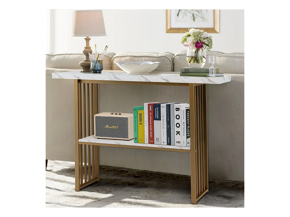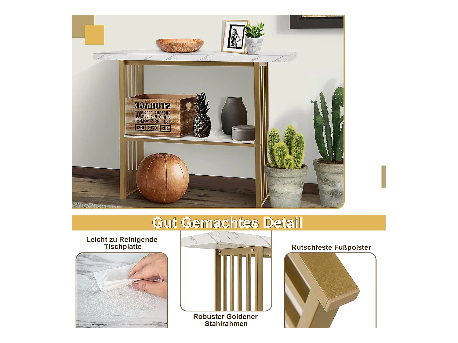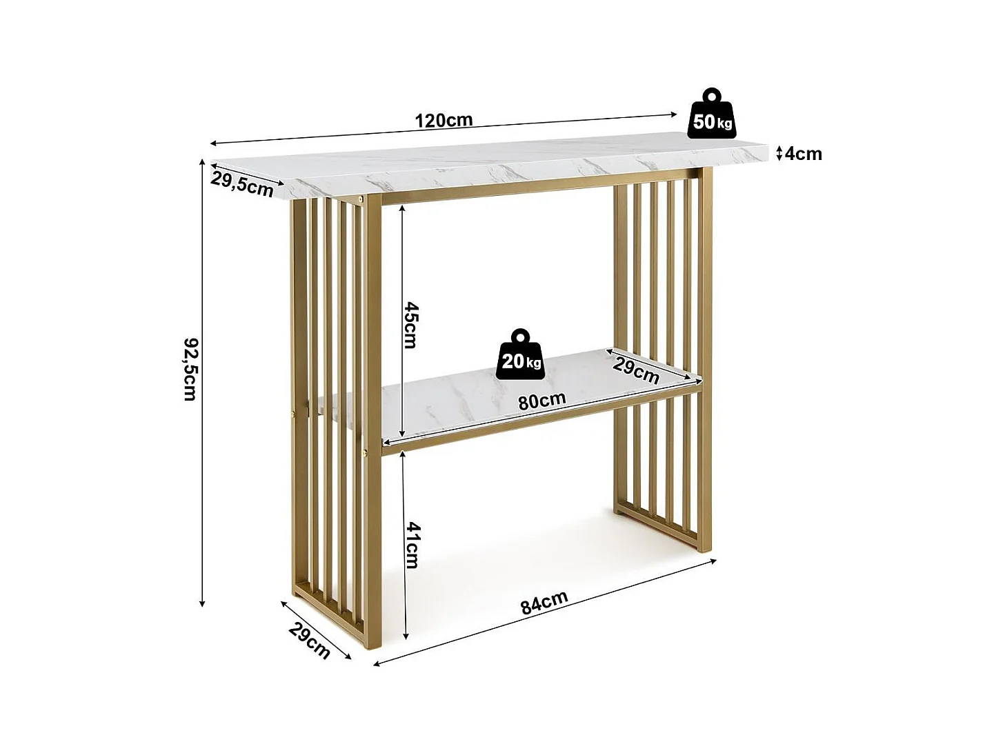 2 Ebenen Konsolentisch mit Marmoroptik 120 x 29,5 x 92,5 cm Weiß & Golden