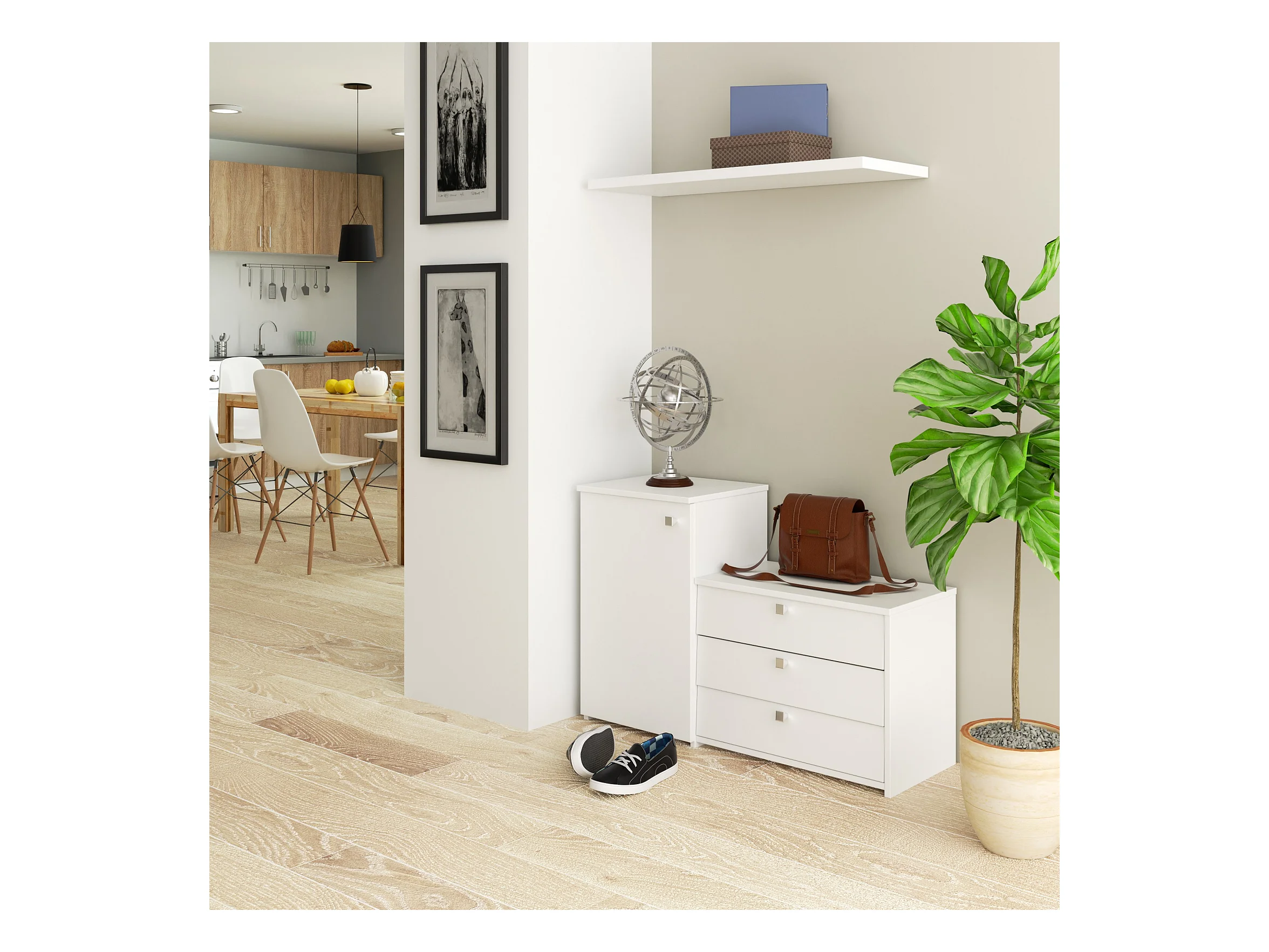 2-in-1 Garderobenkommode und Schuhschrank AKORD S16 in der Farbe Weiß mit 4 Schuhkipper B98,4 x H68 x T33 cm Gewicht 24,9 kg