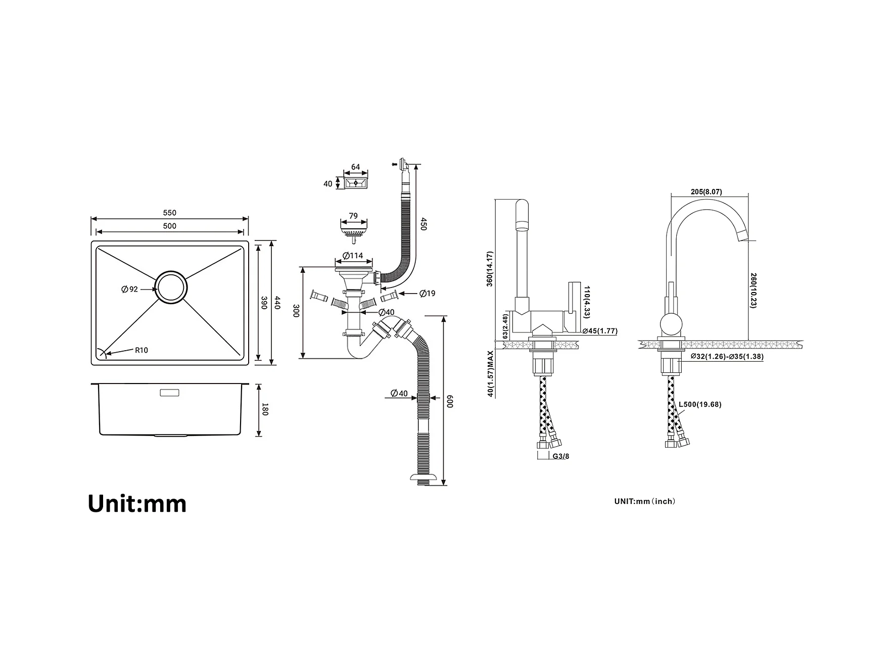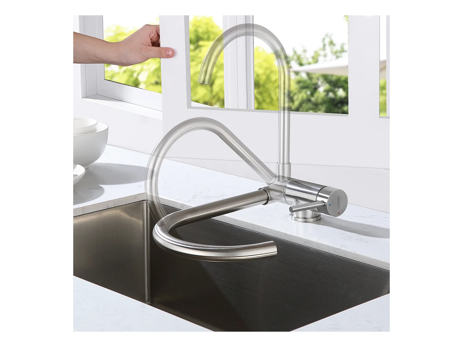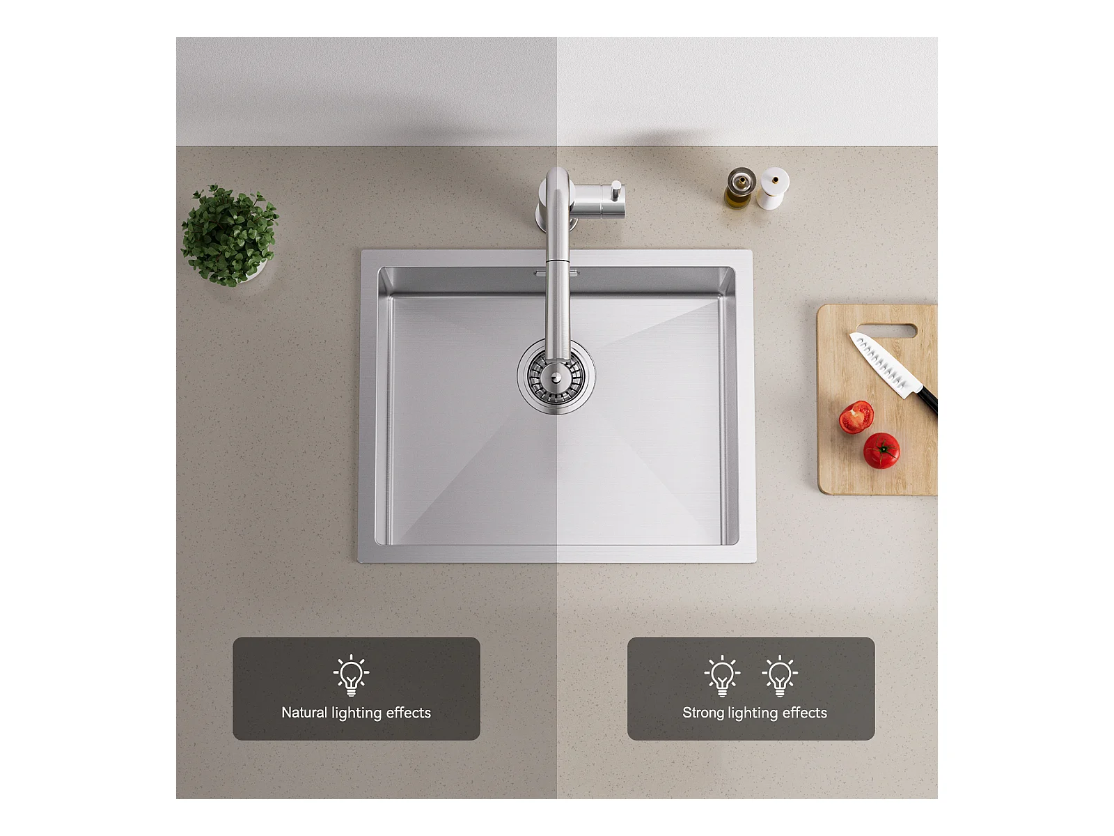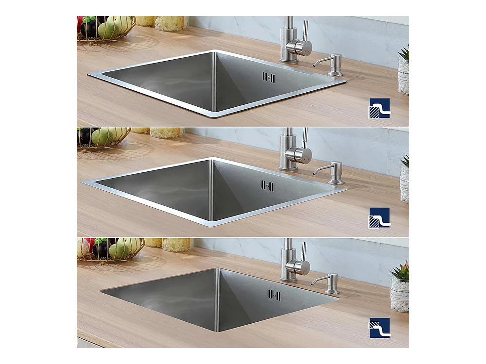 2-in-1-Küchenspüle mit Einzelbecken, 55 x 44 x 19 cm, Einbau-/Blumen-/Unterbauspüle, gebürsteter Küchenmischhahn aus Edelstahl 304, 360 ° schwenkbar, faltbar