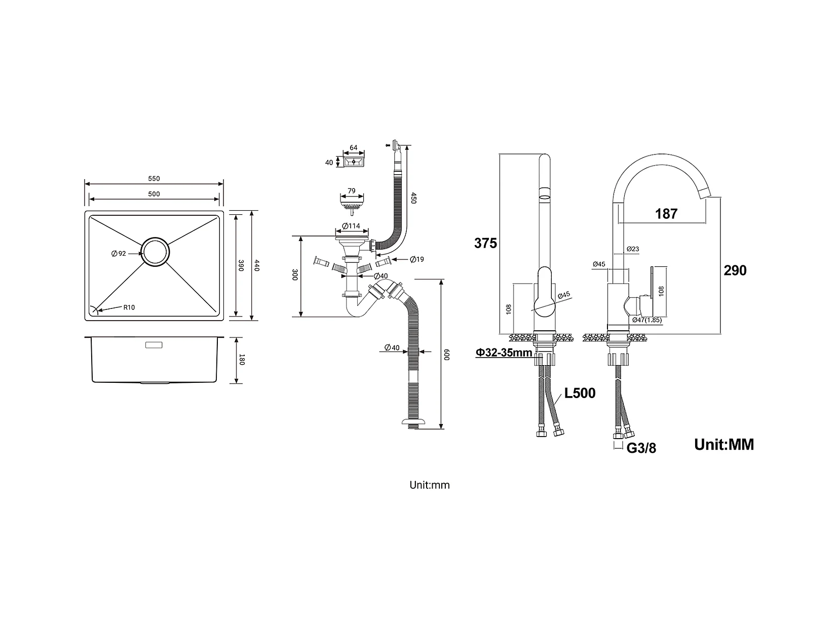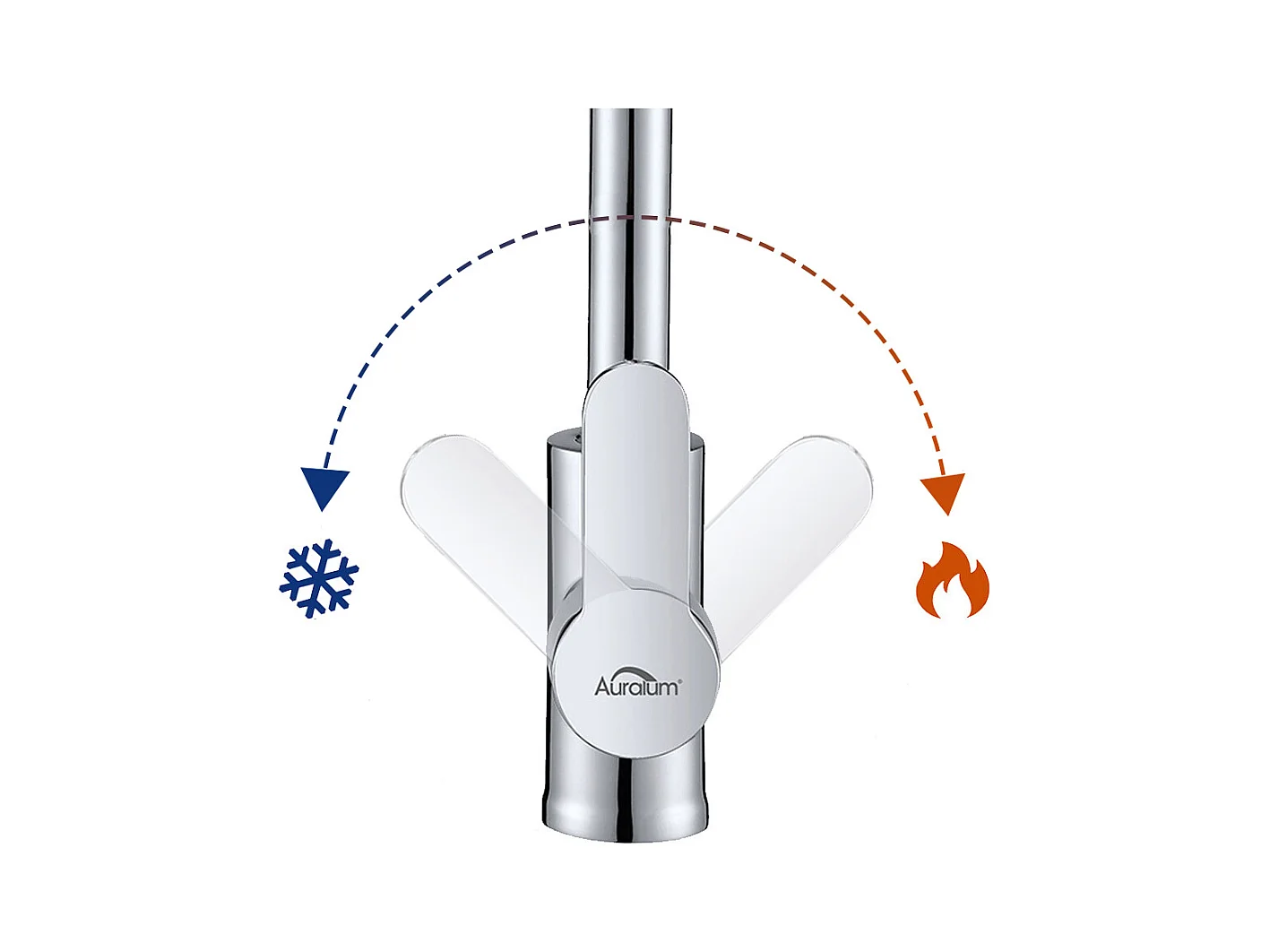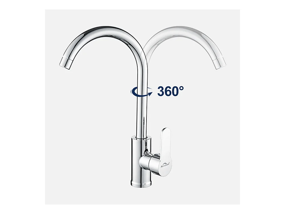 2-in-1-Küchenspüle mit Einzelbecken, 55 x 44 x 19 cm, Unterbau/flächenbündig/Unterbau, gebürstet + 360° schwenkbarer Küchenhahn mit Warm-/Kaltwasser, Chrom