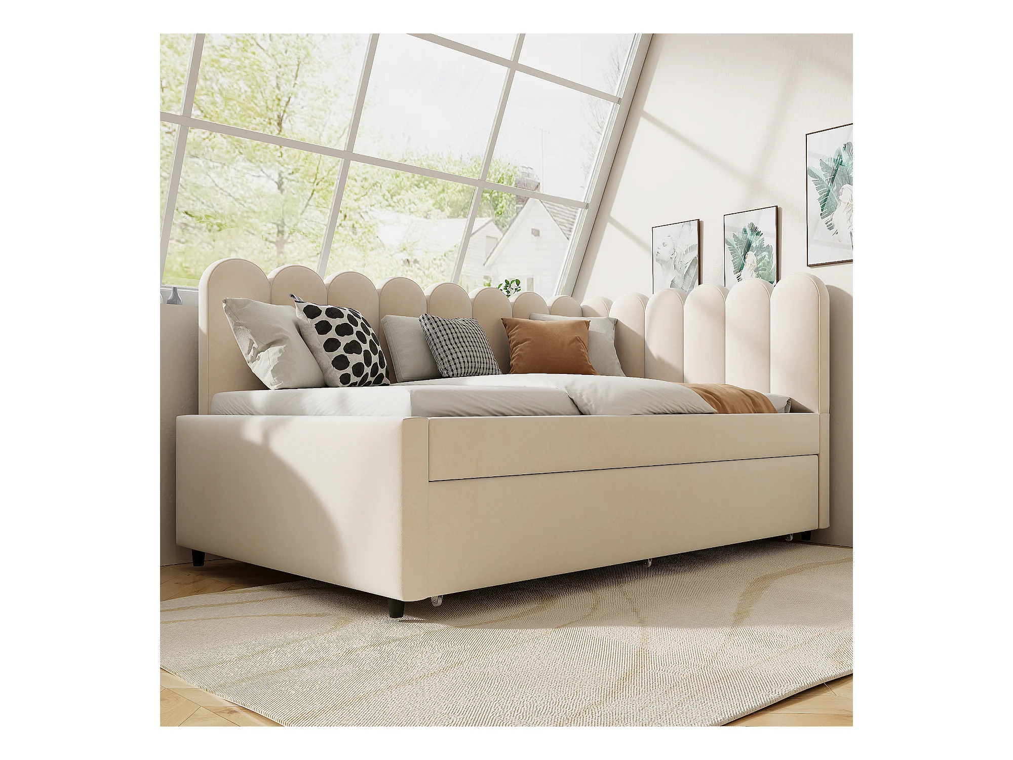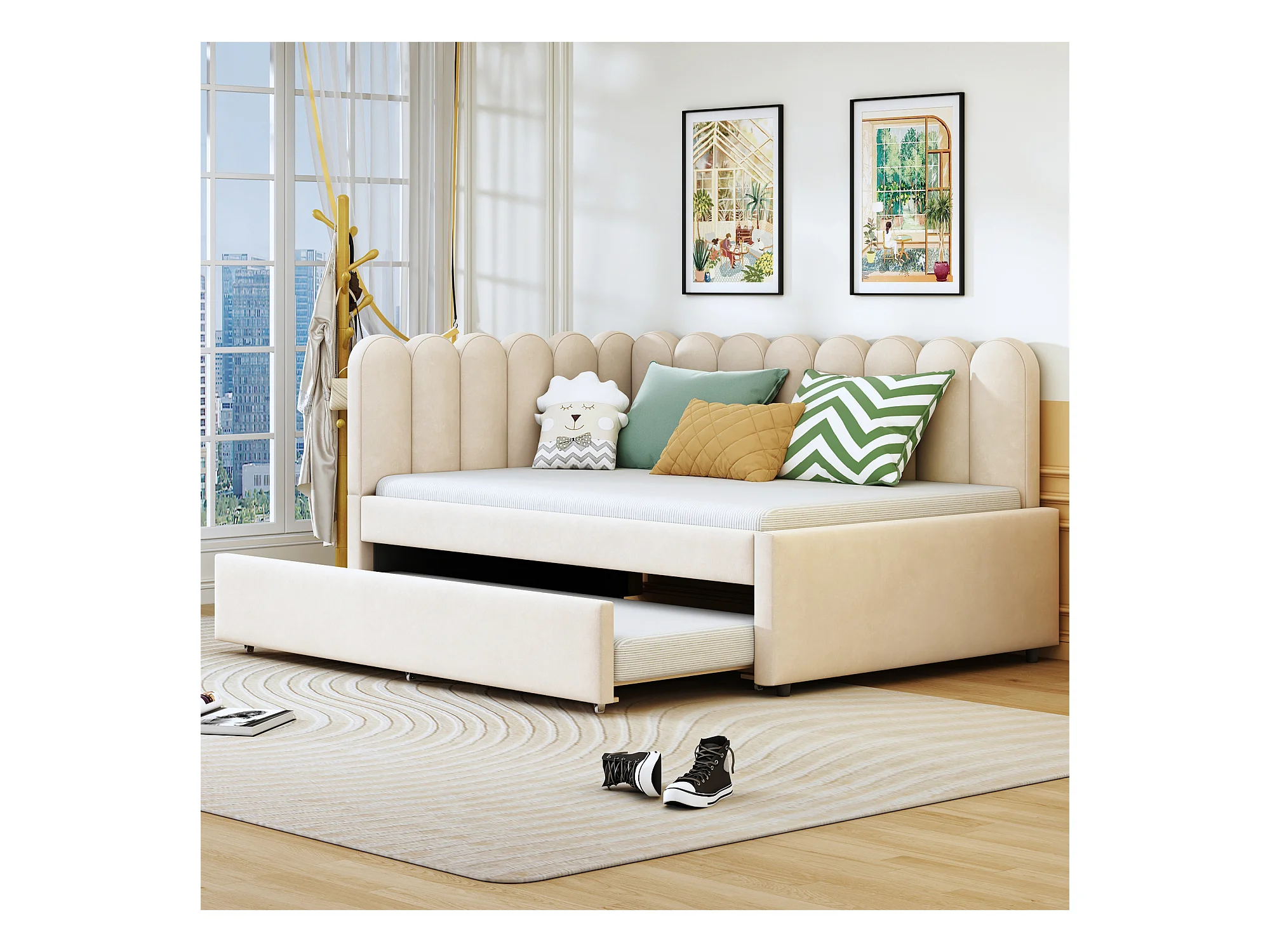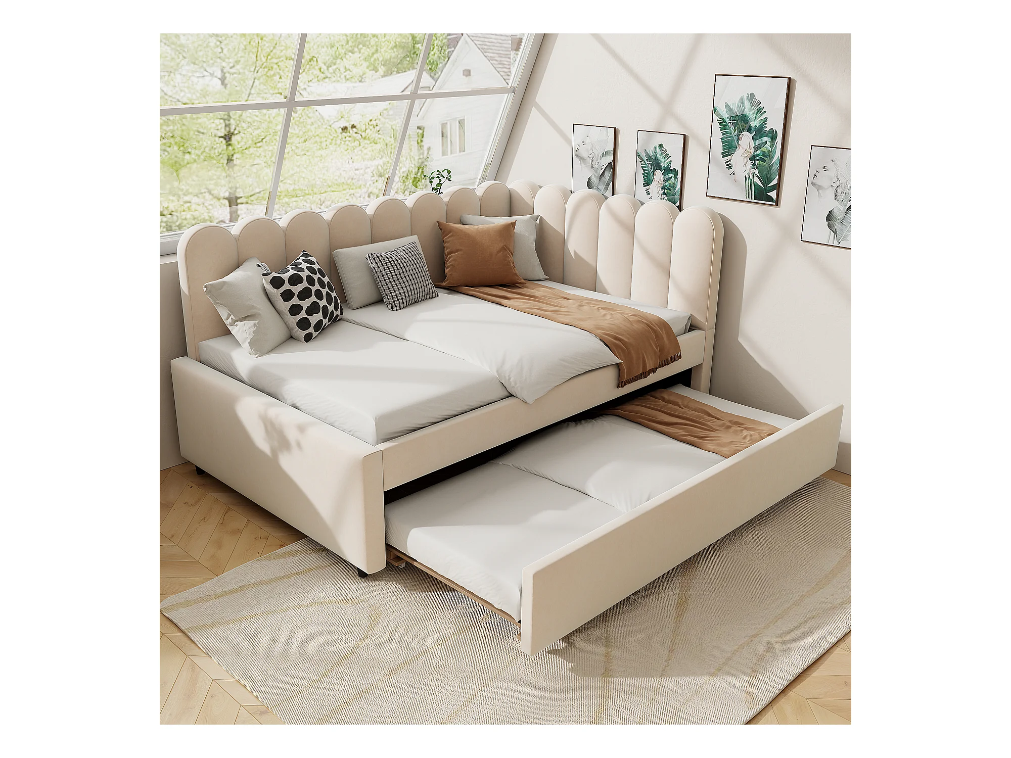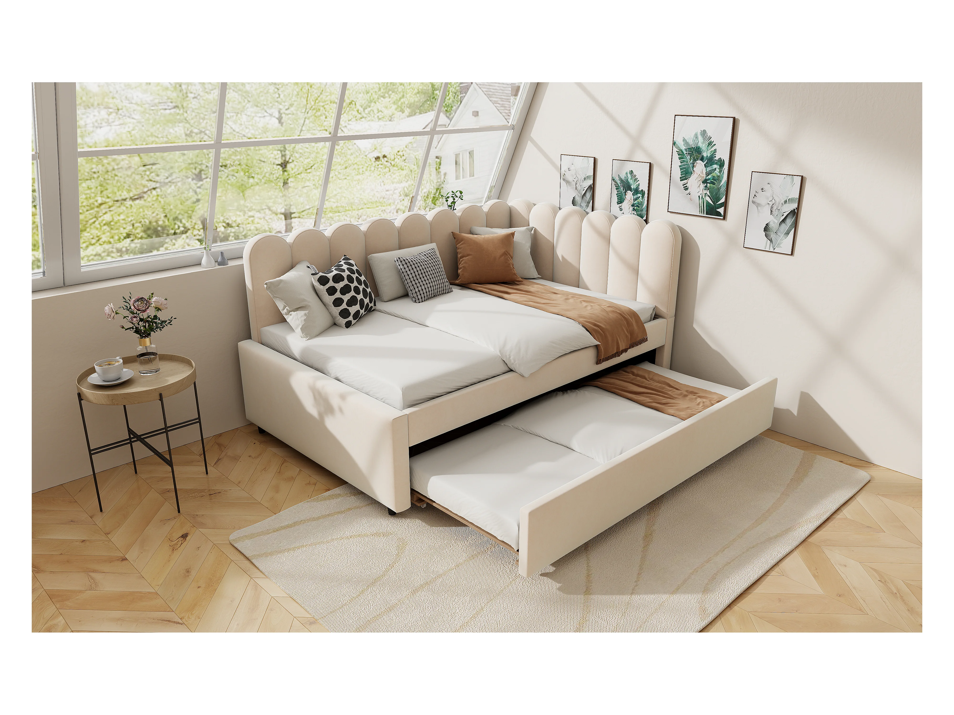 2-in-1-Polsterschlafsofa für Kinder – 140 x 200 cm + 90 x 190 cm – L-Form – Samt + Sperrholz + MDF – Beige