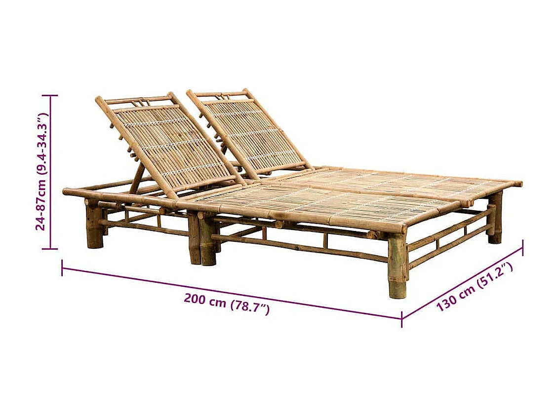 2-Personen-Sonnenliege mit Auflagen Bambus