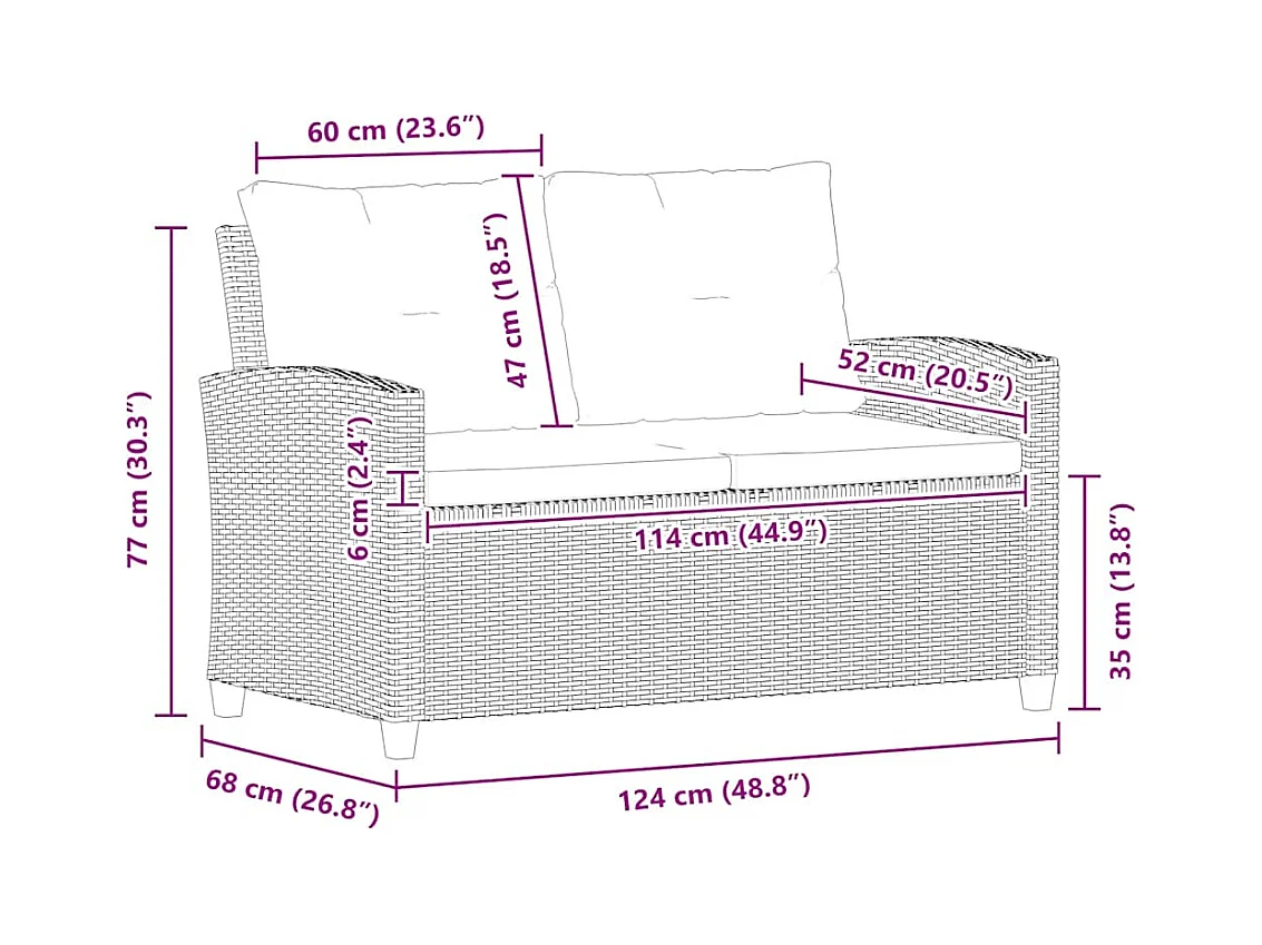 2-Sitzer-Gartensofa mit Kissen Grau 124 cm Poly Rattan