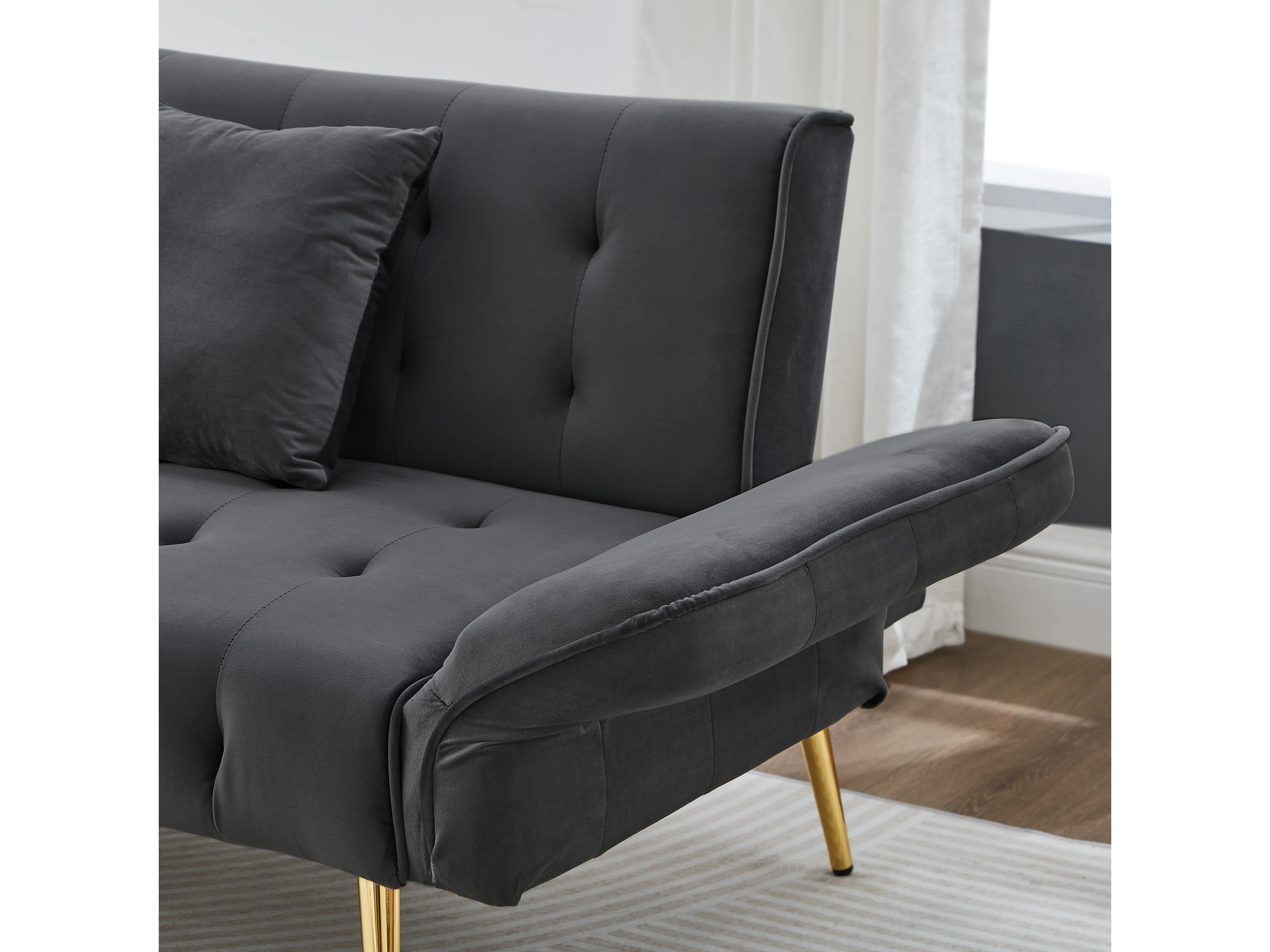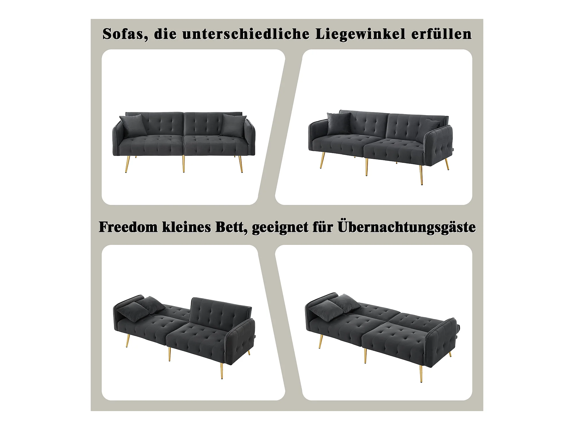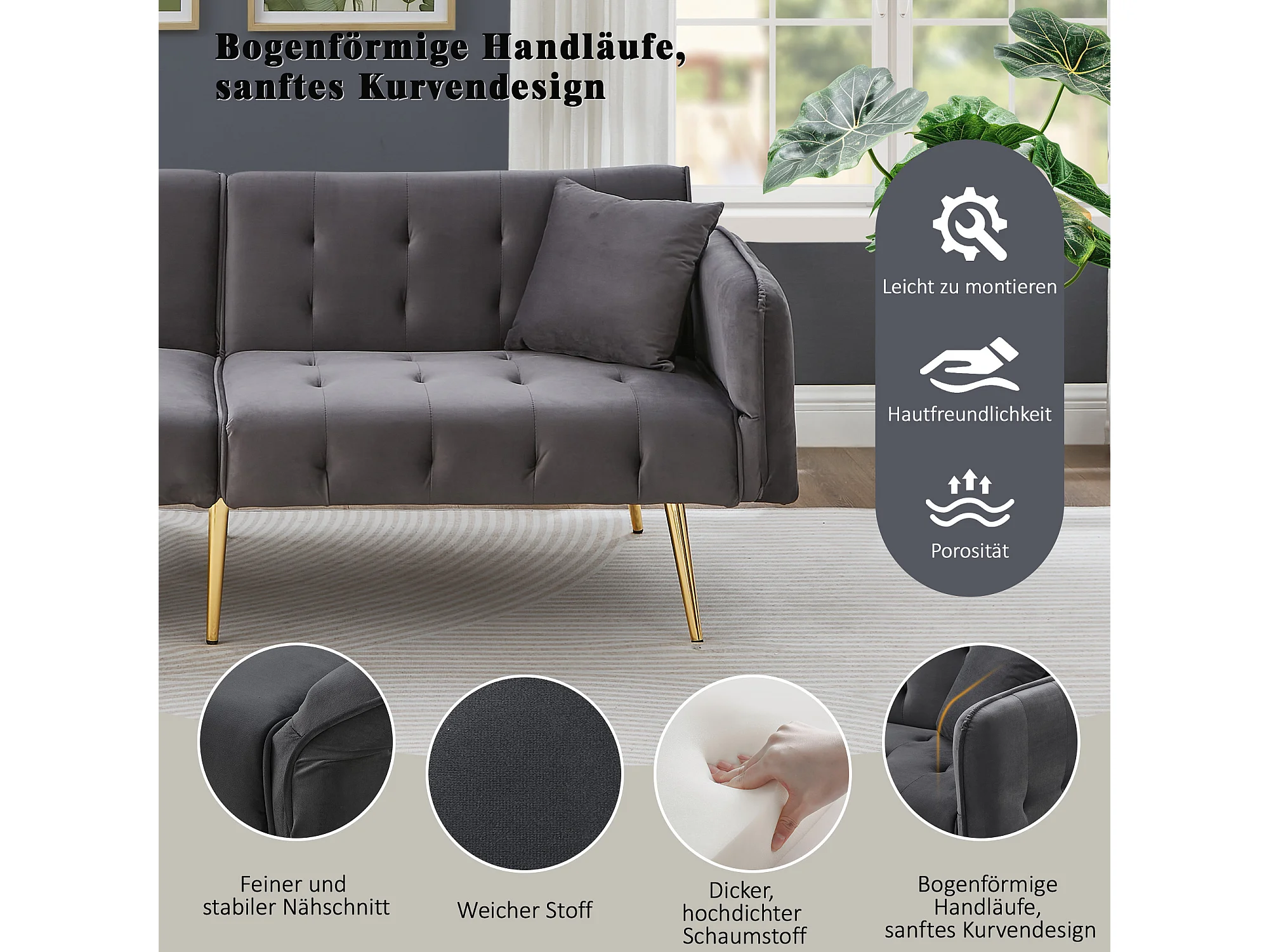 2-Sitzer-Schlafsofa – 178 x 82 x 70 cm – mit verstellbarer Rückenlehne und Armlehnen – Samt – Grau