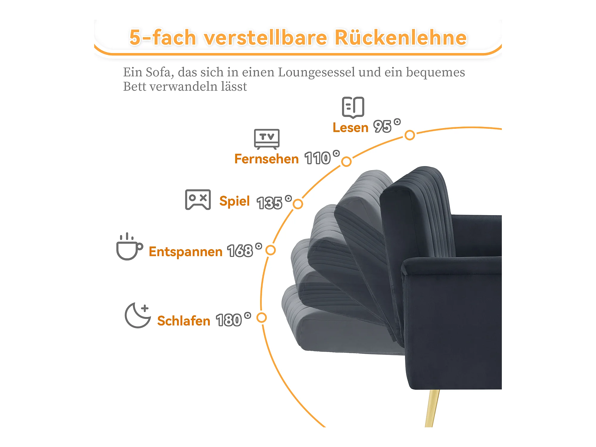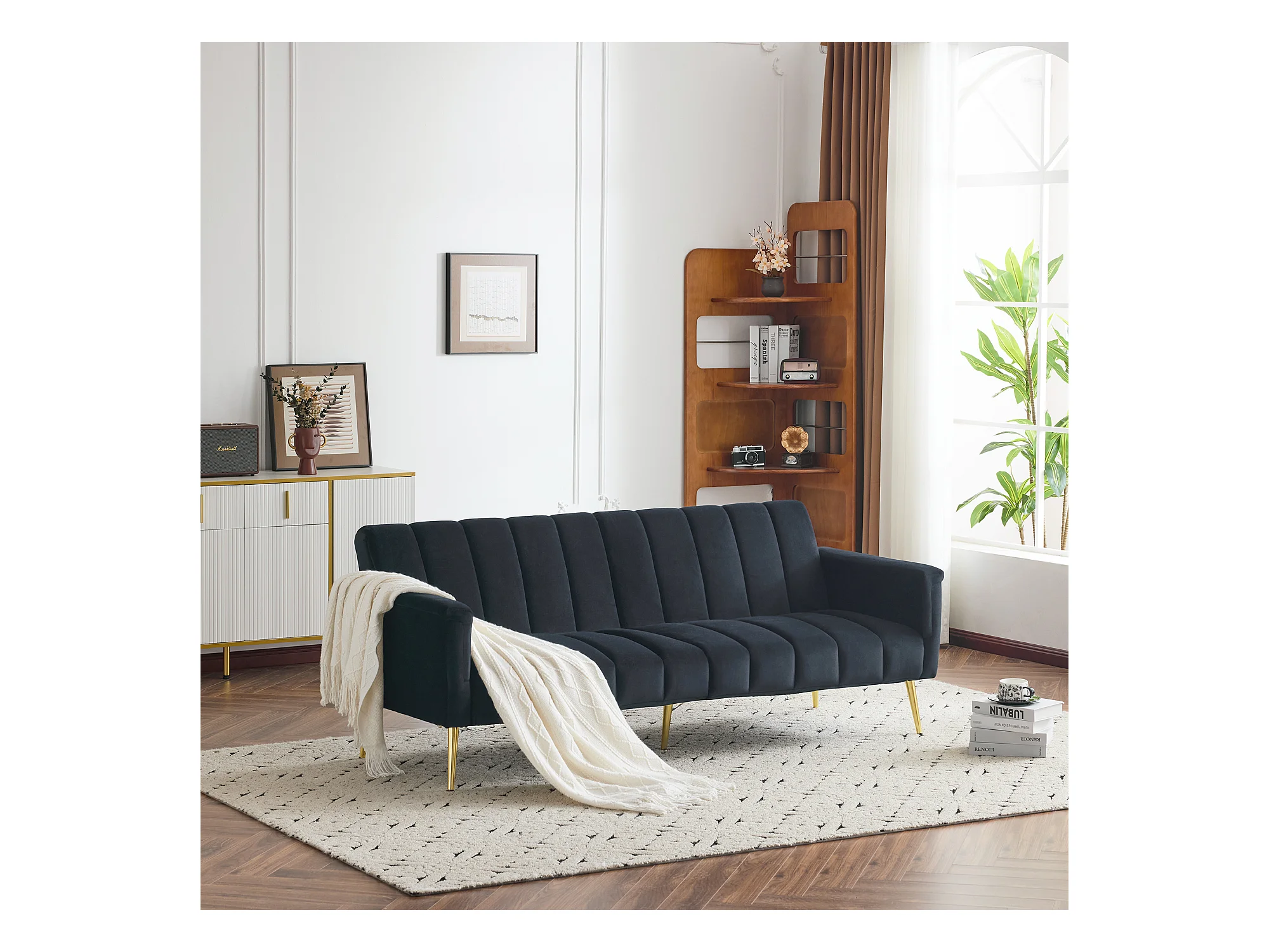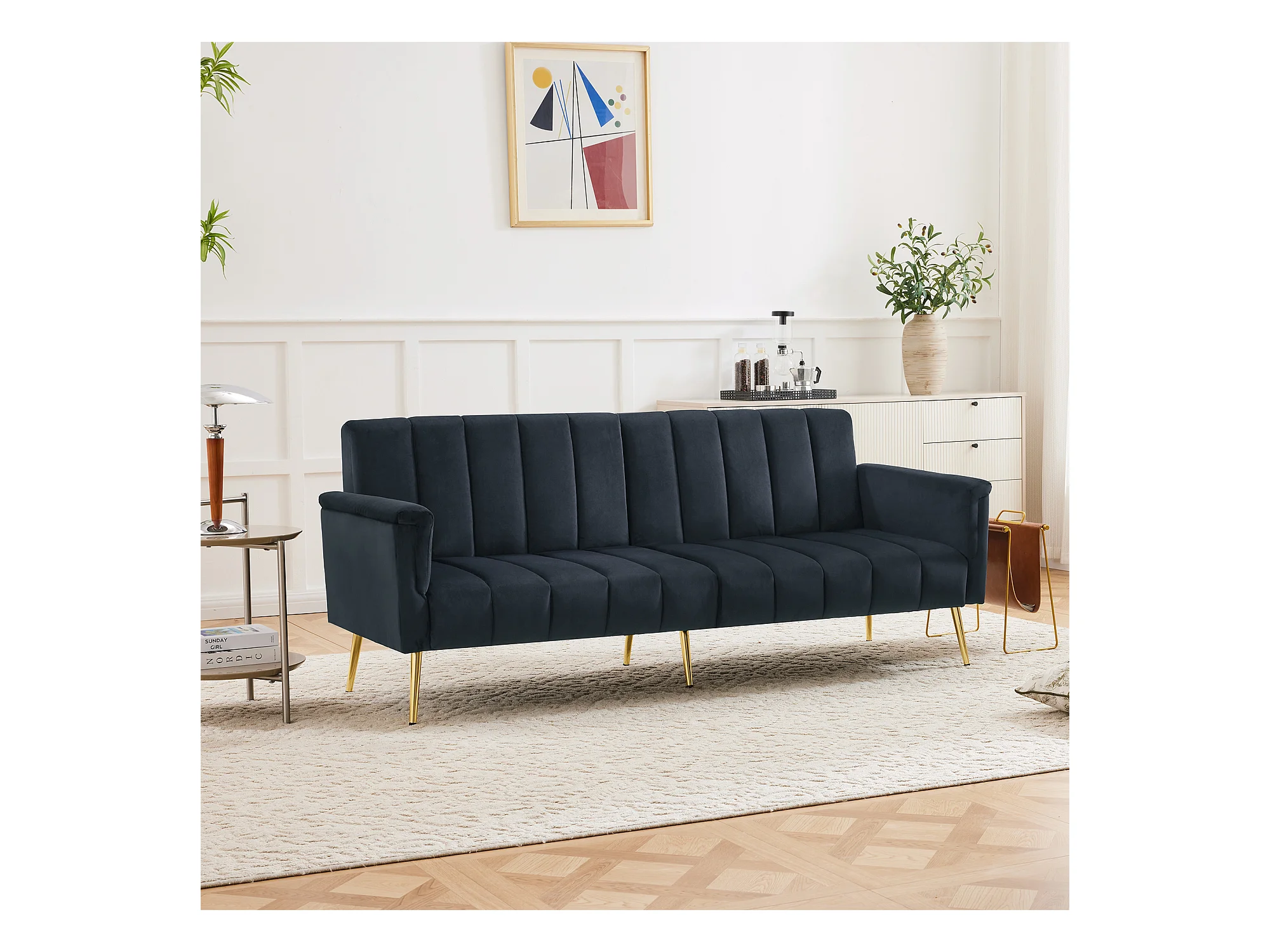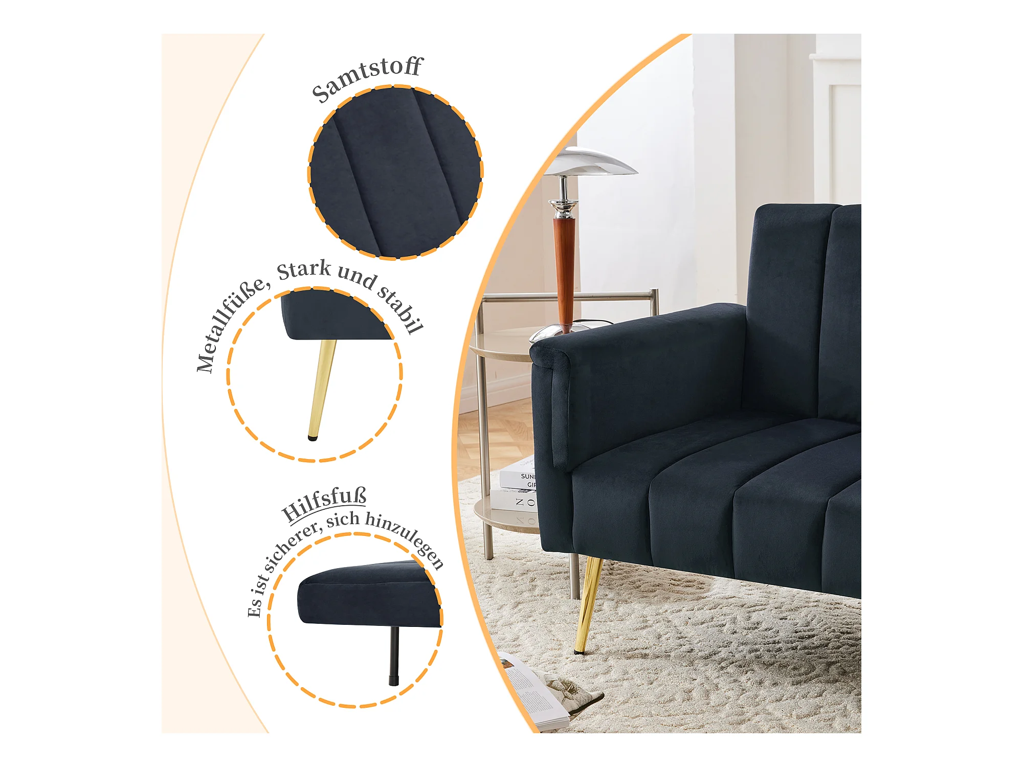 2-Sitzer-Schlafsofa aus Samt – 183 x 76 x 75 cm – Goldfarbene Metallbeine – Schwarz