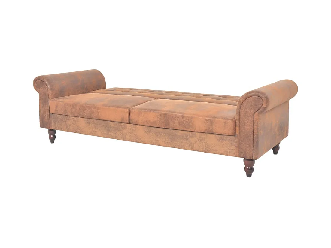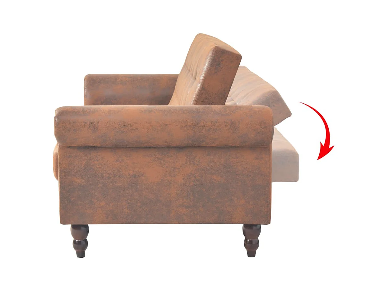 2-Sitzer Schlafsofa mit Armlehnen Künstliches Wildleder Braun