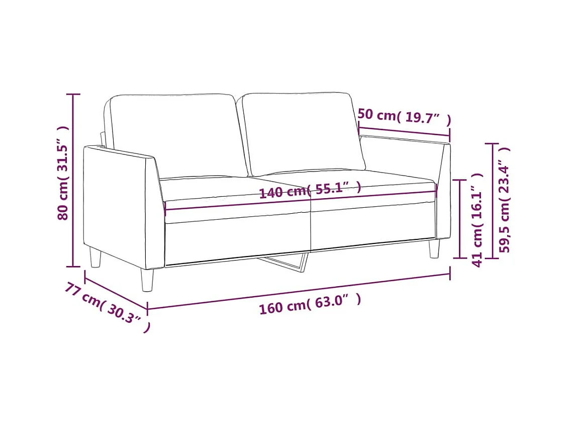 2-Sitzer-Sofa Creme 140 cm Kunstleder