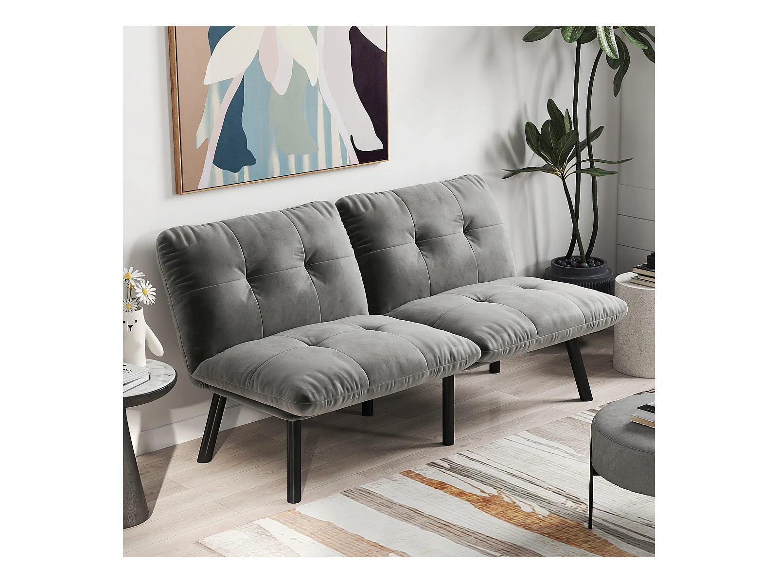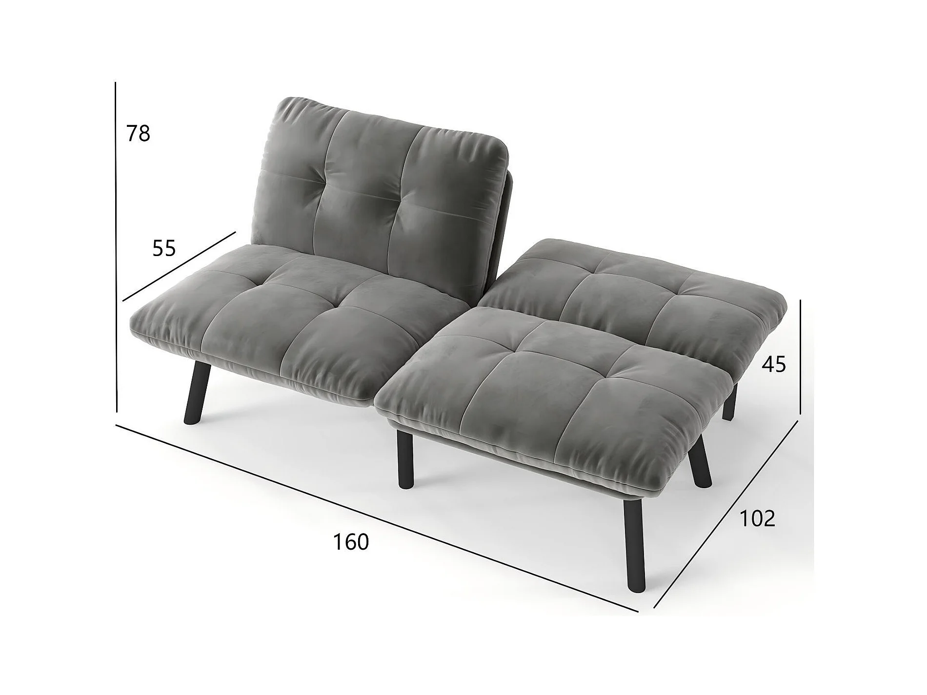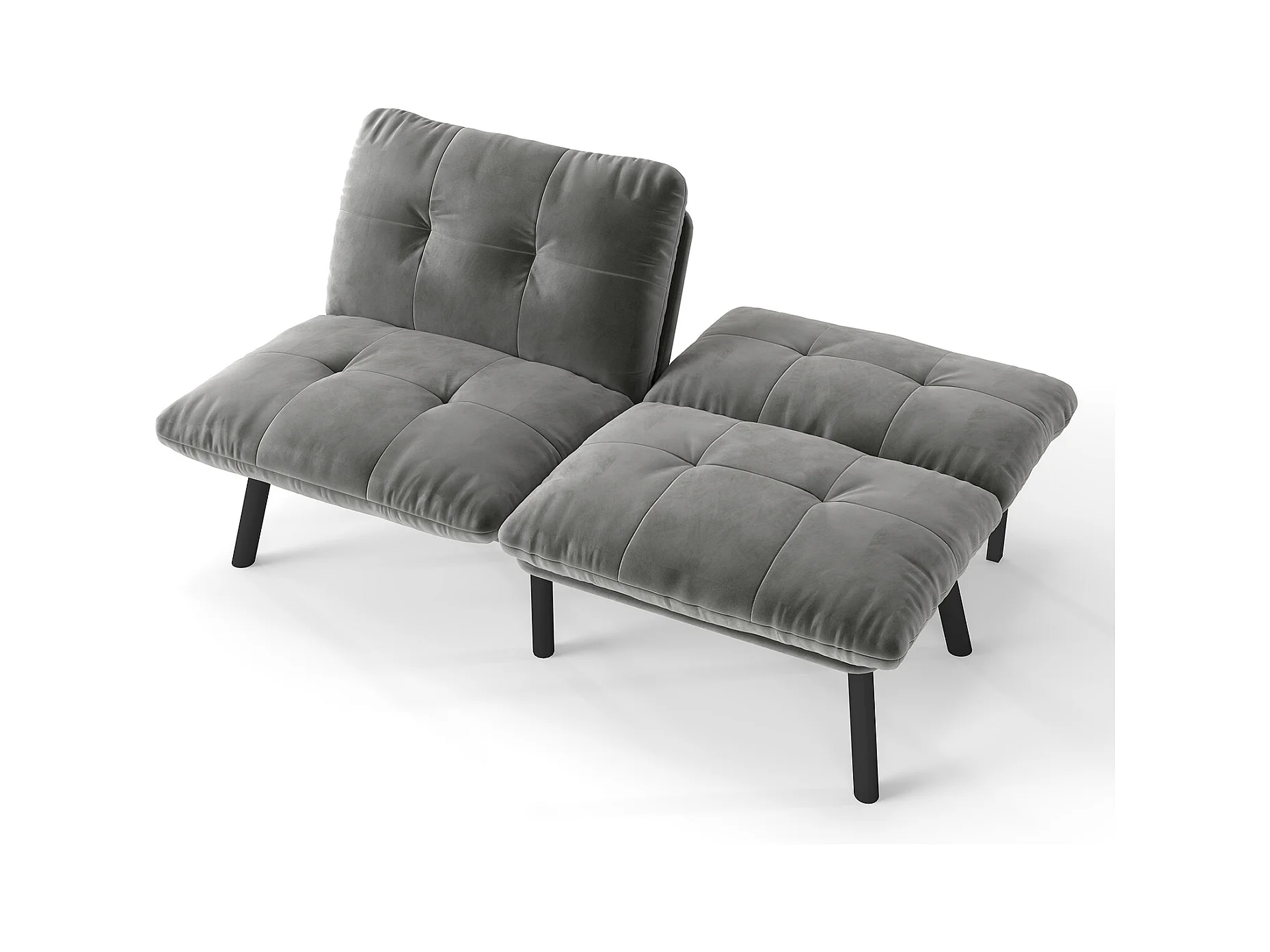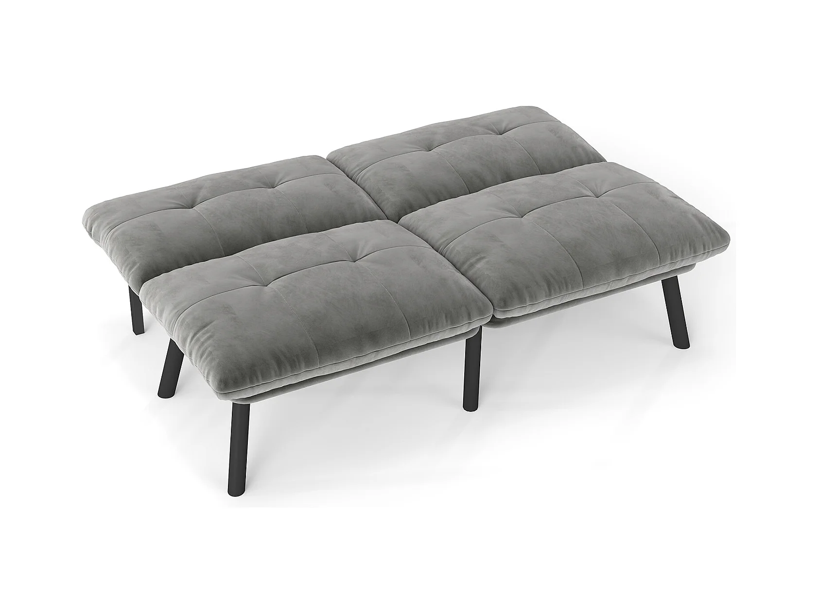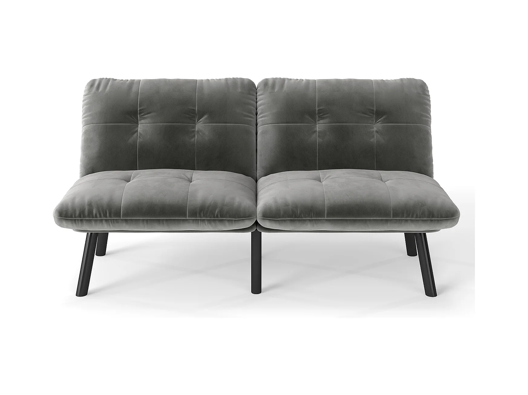 2-Sitzer-Sofa – Gerades Sofa mit klappbarer Rückenlehne und Metallbeinen – Grauer Samt