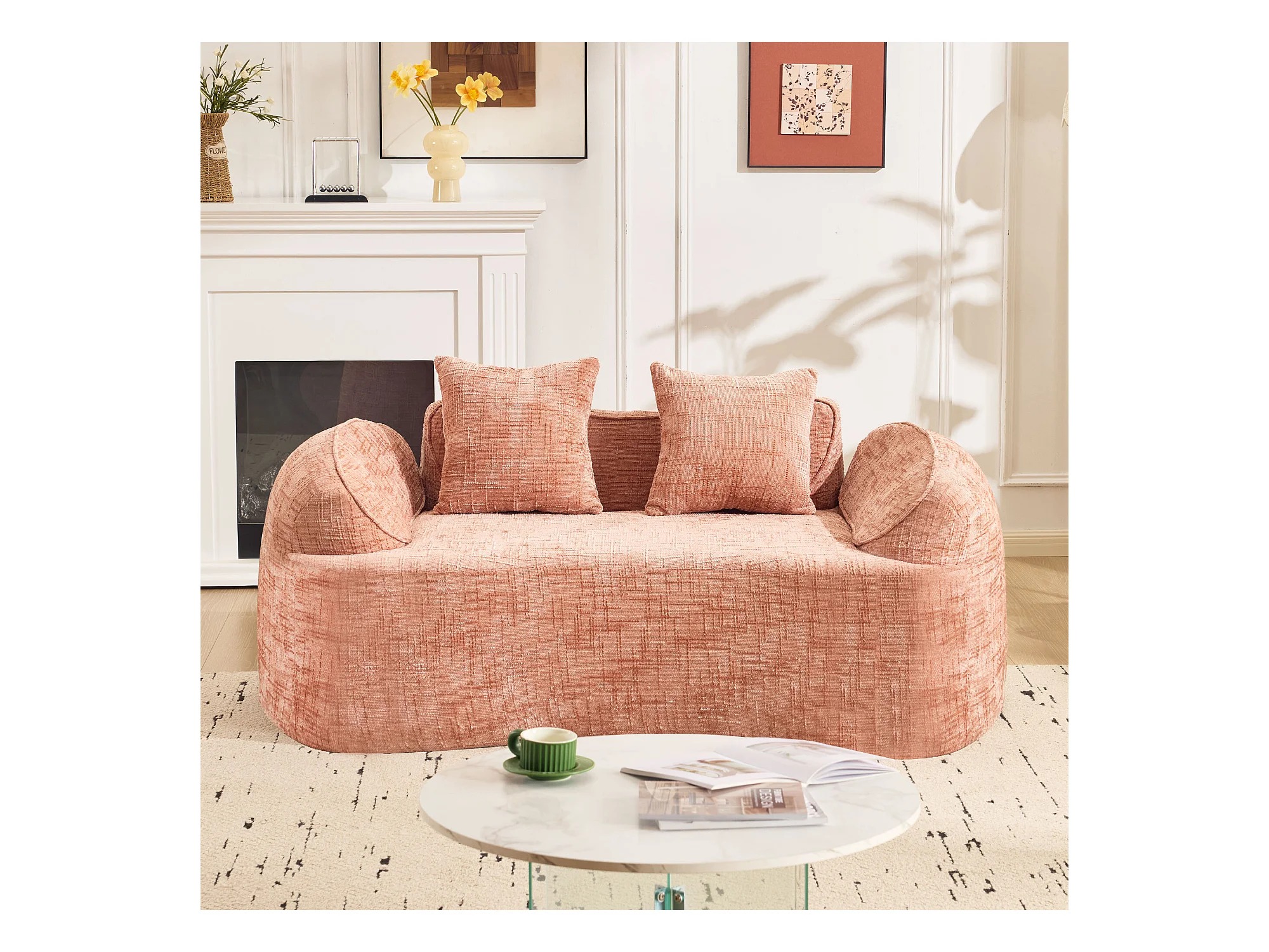2-Sitzer-Sofa mit Armlehnen und gepolsterten Kissen, geschwungenes Design - rosa Chenille