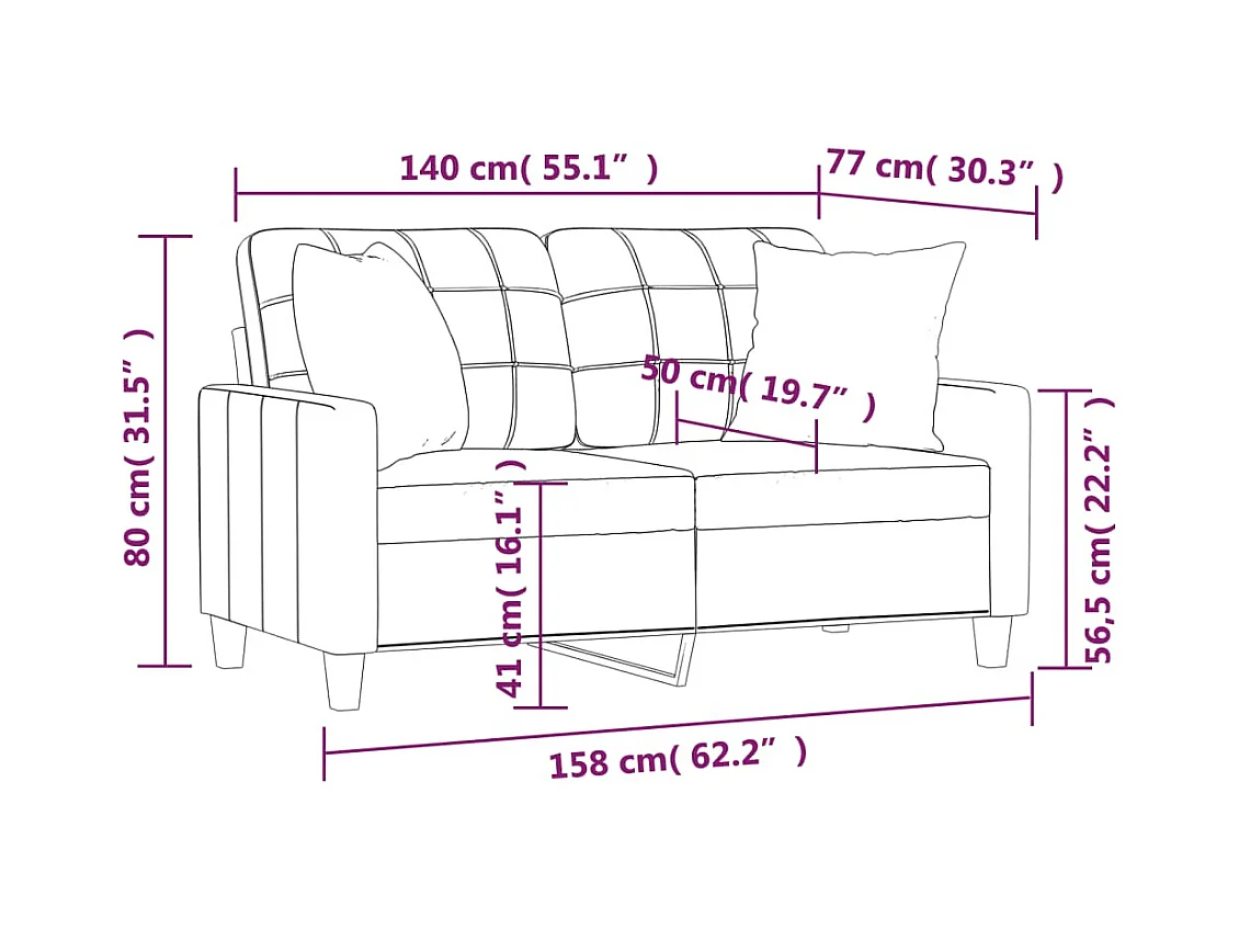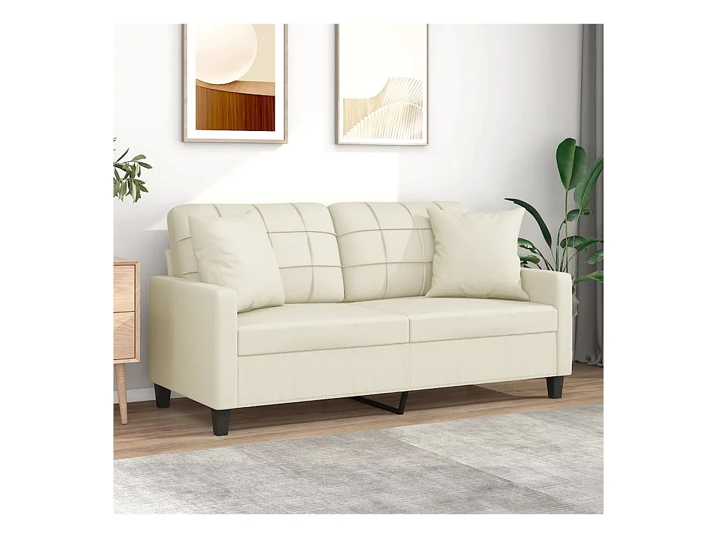 2-Sitzer-Sofa mit Zierkissen Creme 140 cm Kunstleder
