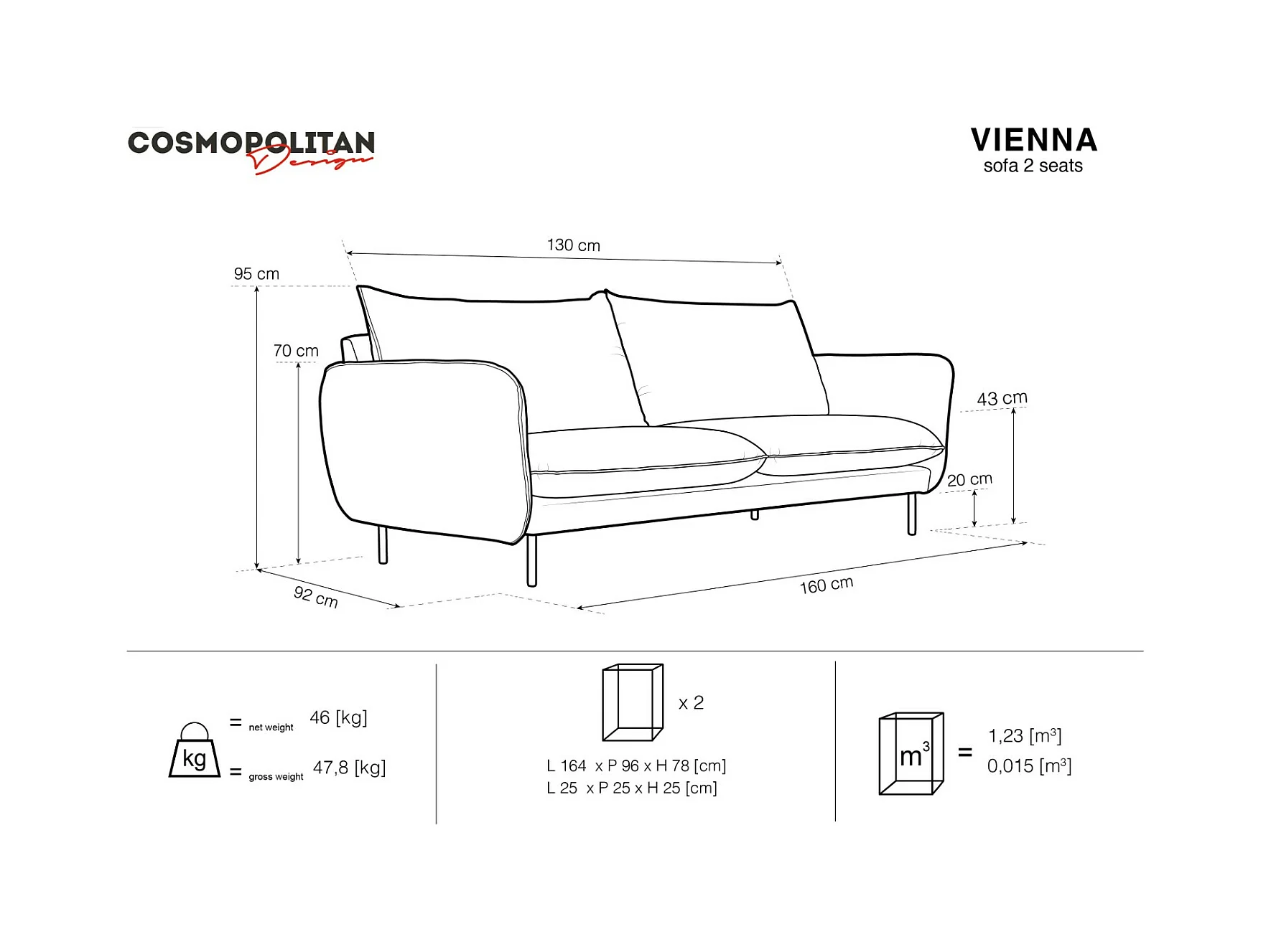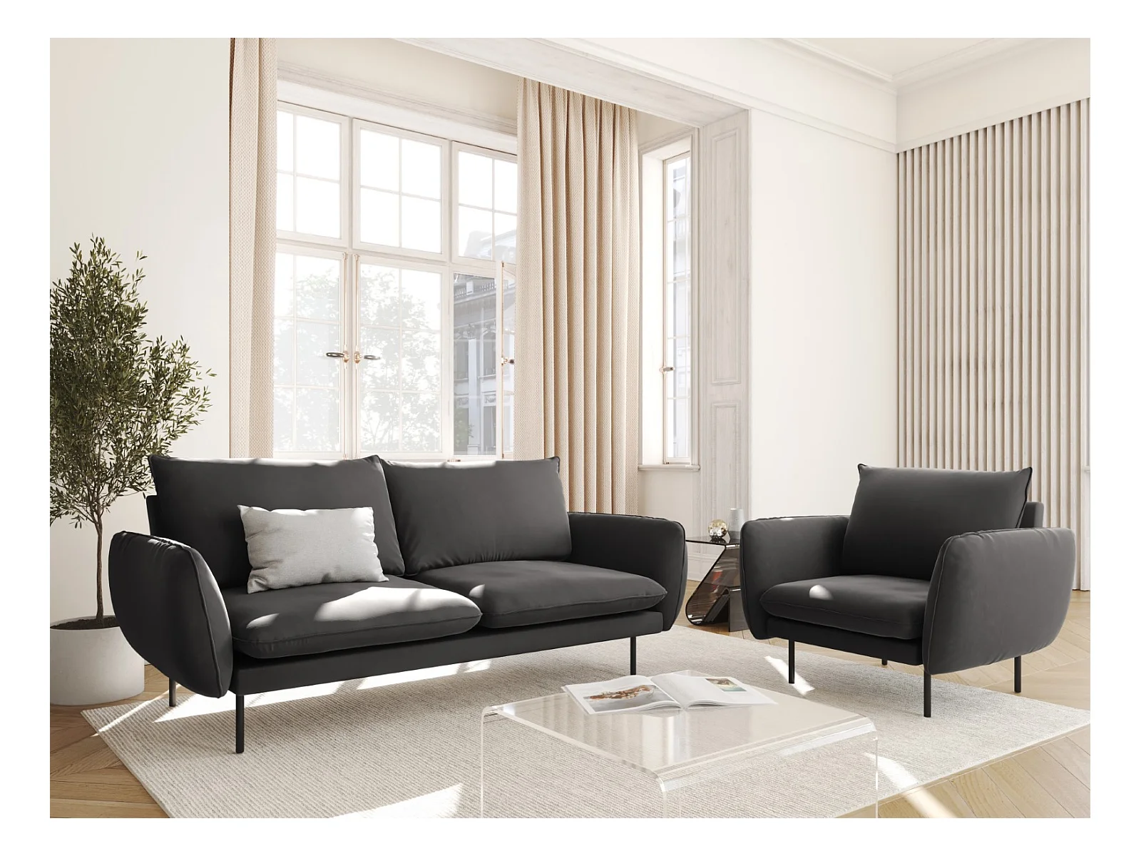 Cosmopolitan Design - 2-Sitzer Sofa "Vienna" aus Samt dunkelgrau - 160x92x95cm