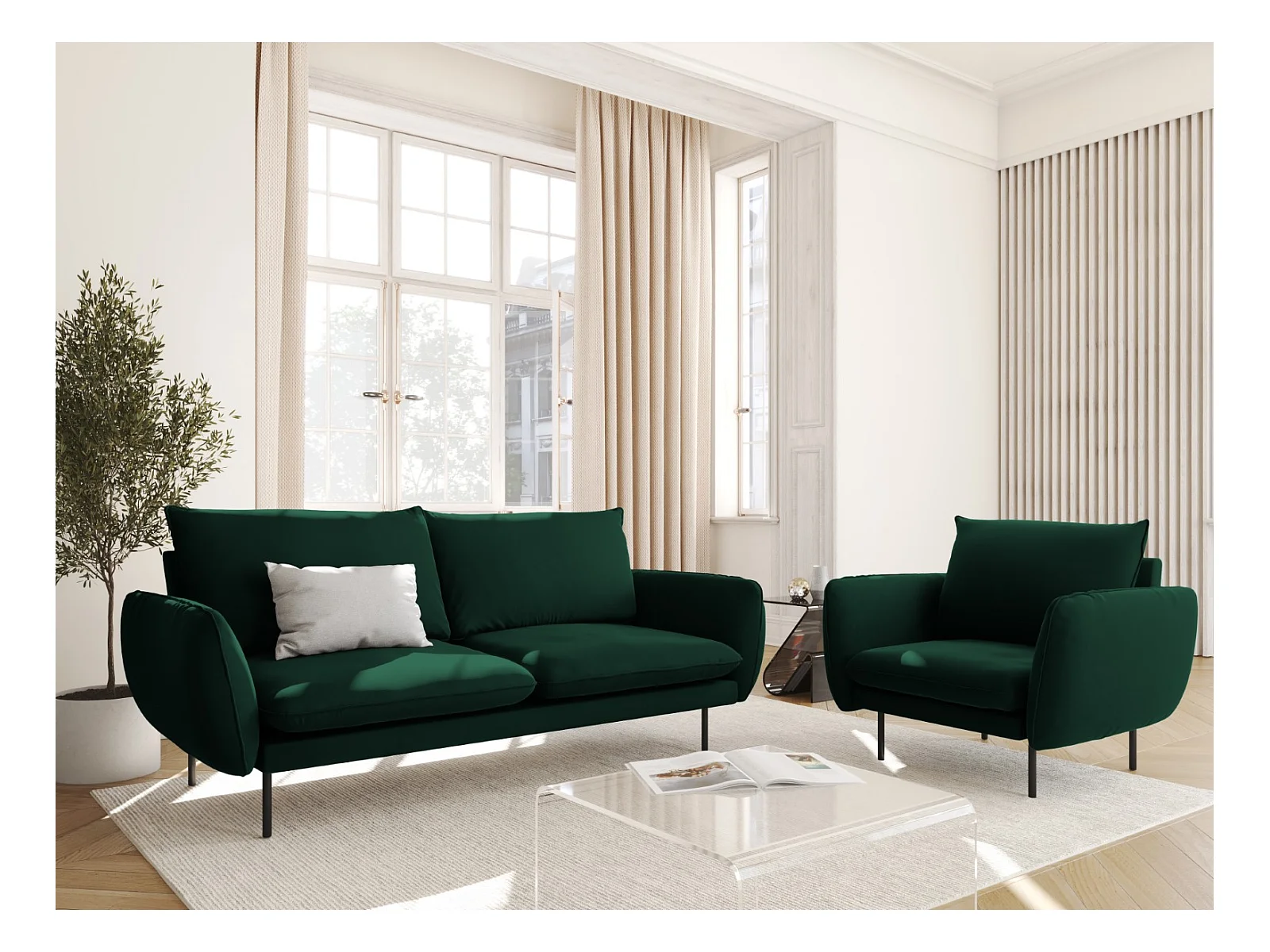 Cosmopolitan Design - 2-Sitzer Sofa "Vienna" aus Samt flaschengrün - 160x92x95cm