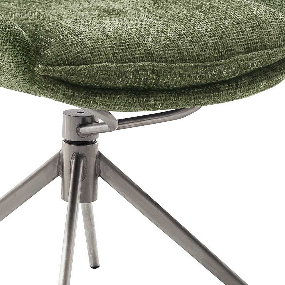 2 Stühle aus Strukturstoff und Metall Oliv Grün und Edelstahlfarben (2er Set)