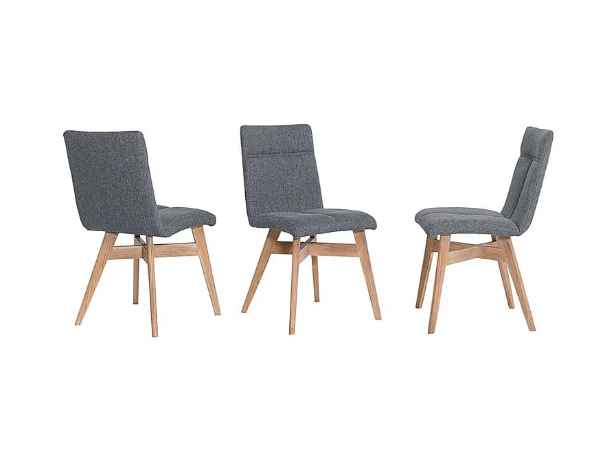 2 Stühle in Grau Webstoff Massivholzgestell aus Eiche (2er Set)
