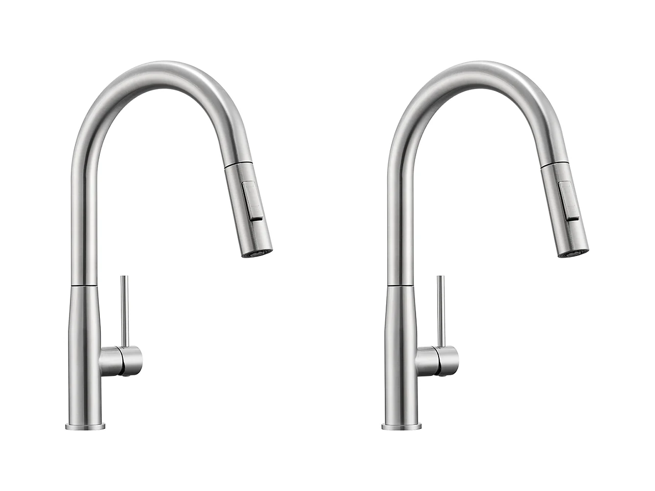 2 STK. AURALUM MAX Küchenarmatur, Edelstahl-Spültischarmatur mit ausziehbarer Brause, 2 Kalt-/Warmwasserstrahlmodi 360° drehbar, U-förmiger Auslauf, gebürstet