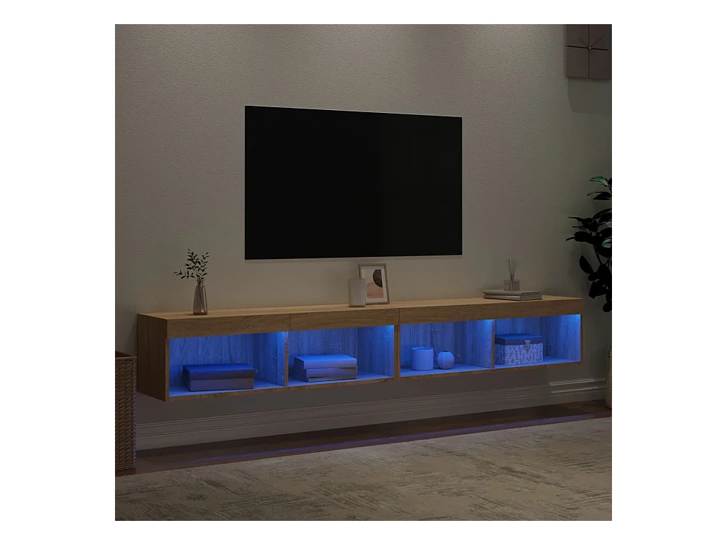 2 Stk.TV-Schränke,TV-Möbel mit LED-Leuchten Sonoma-Eiche 100x30x30 cm -gkd333812