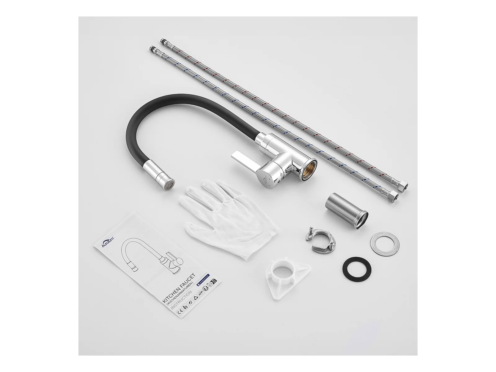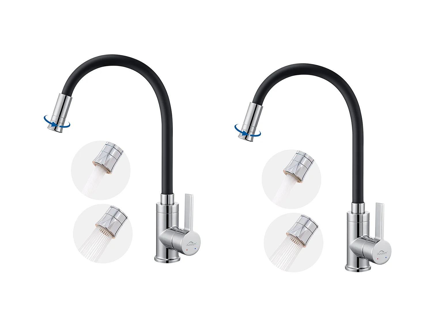 2 Stück schwarzer Küchenhahn, flexibler Küchenmischhahn, 2 Sprühmodi, 360° drehbar, Küchenspülenhahn mit wassersparendem Perlator